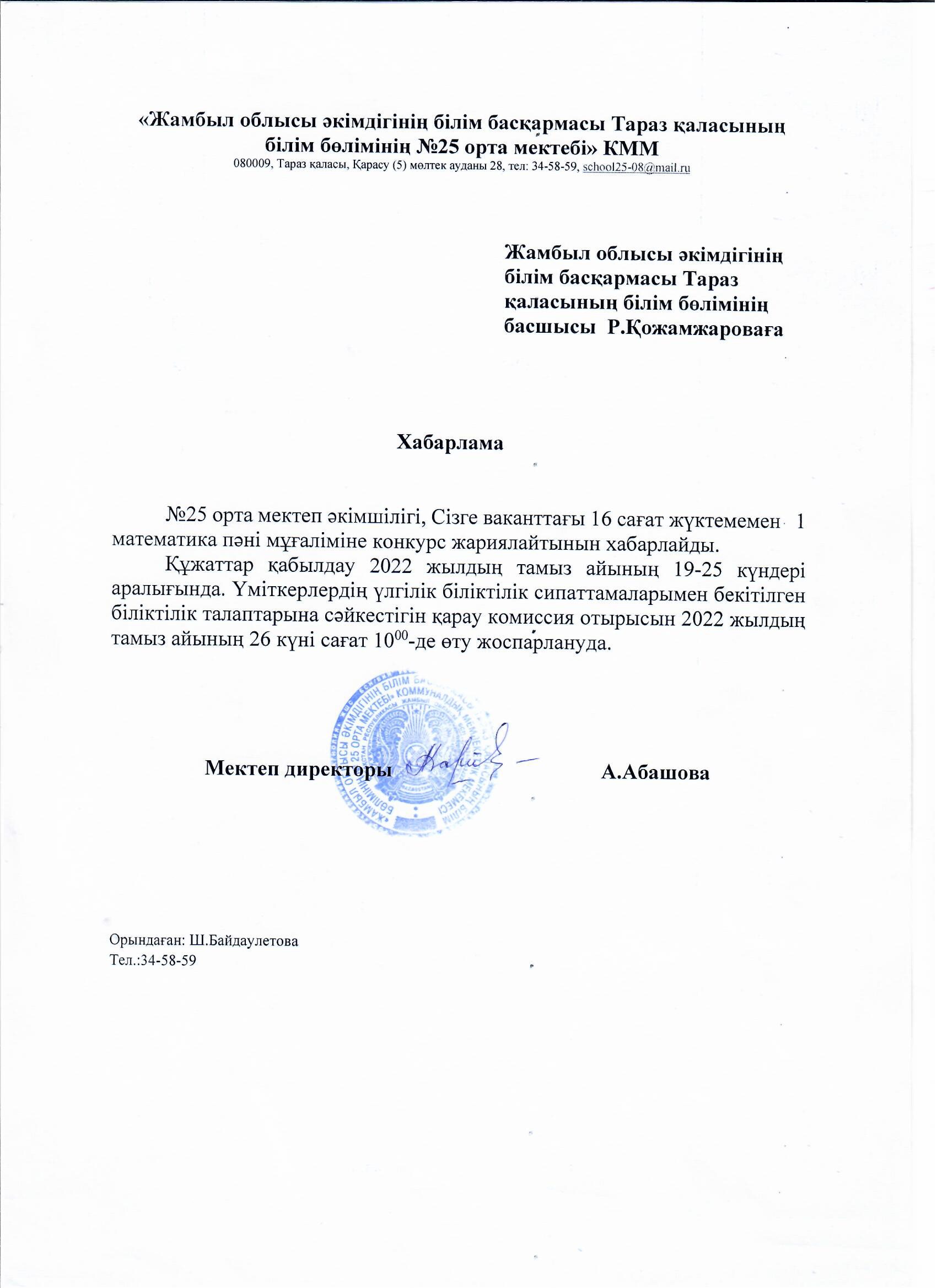 Хабарлама » СШ №25