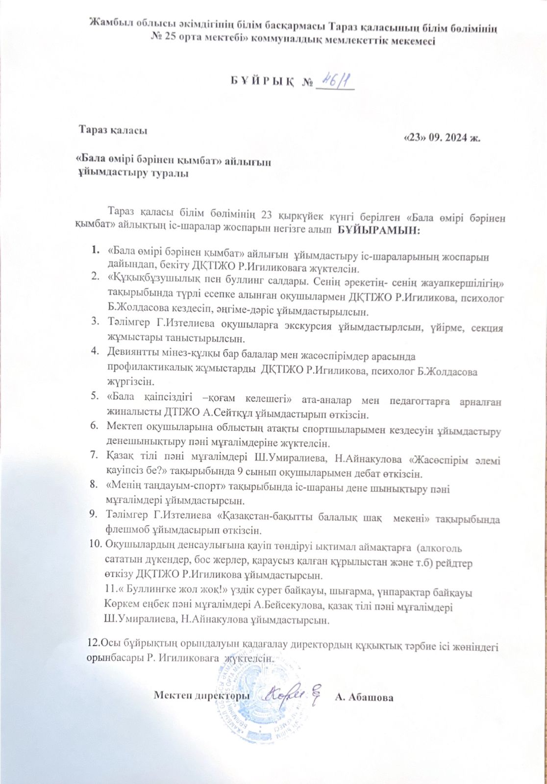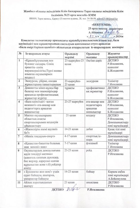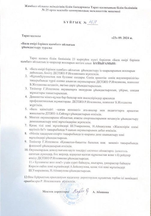 "Бала өмірі бәрінен қымбат" айлығы » СШ №25
