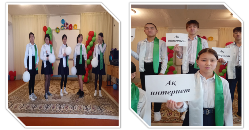 22 февраль 2023 0 1 2 3 4 5 "Ақ интернет" флешмоб 2023 жылдың 20-22 ақпан аралығында Акция - "Ақ интернет" флешмобын балалардың өзін-өзі басқару ұйымы мүшелерін, білім беру ұйымының балалар өкілін қатыстыра отырып ДТІЖО А.Бейсекулова, тәлімгер Г.Изтлеуова ұйымдастыруымен өткізілді.