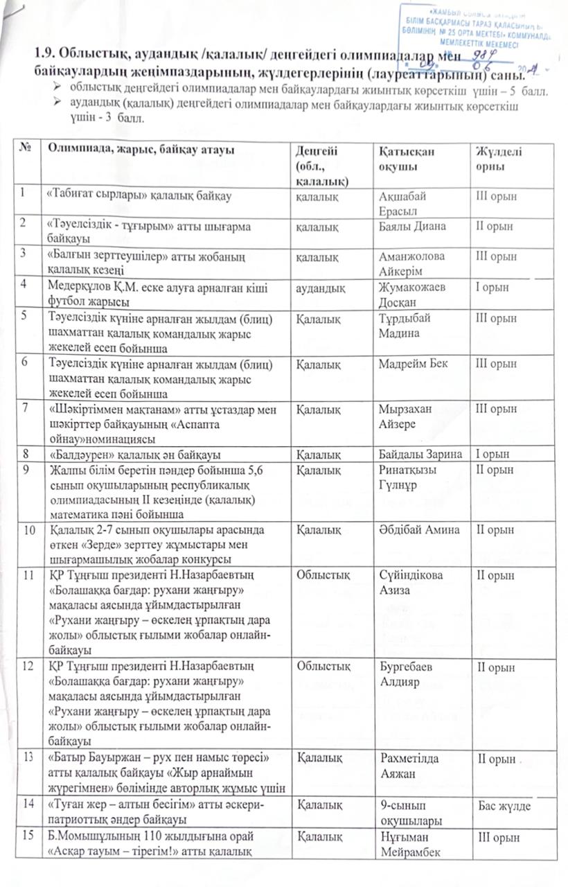 19 май 2021 0 1 2 3 4 5 2020-2021 оқу жылының Тараз қаласы № 25 орта мектебінің оқушылардың жетістіктері