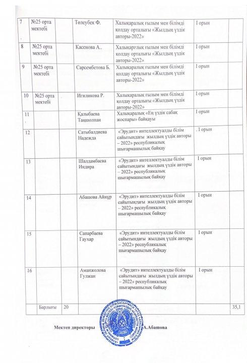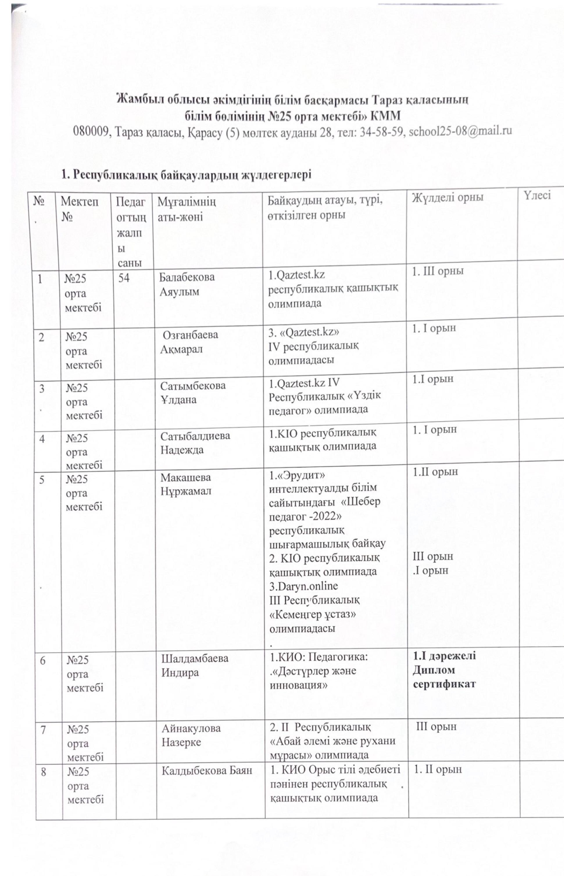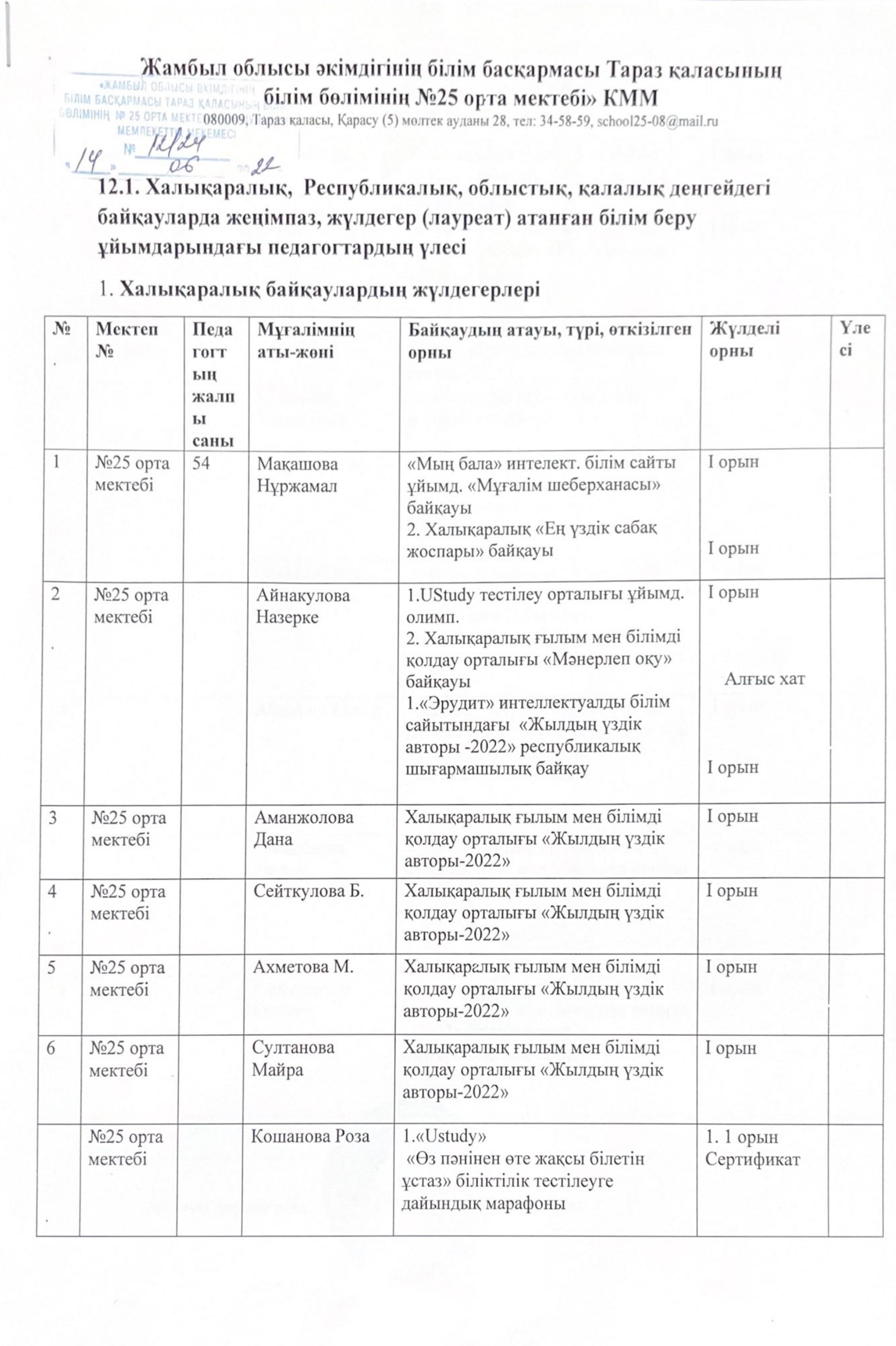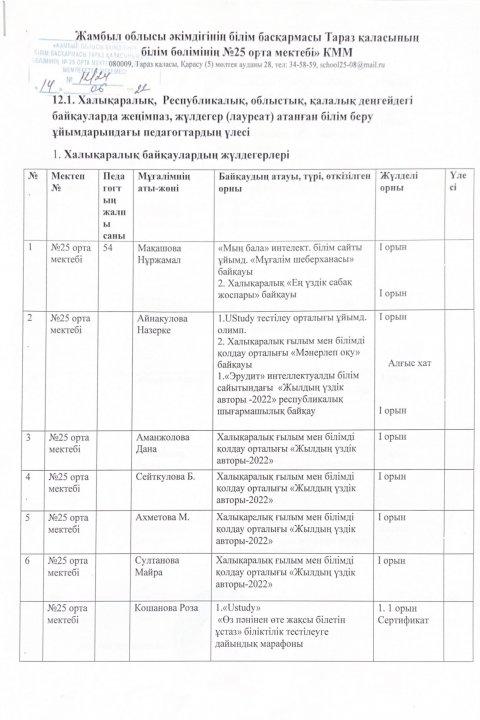 14 июнь 2021 0 1 2 3 4 5 2021-2022 оқу жылының Тараз қаласы № 25 орта мектебінің мұғалім мен оқушылардың жетістіктері