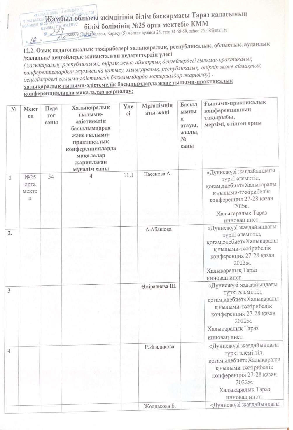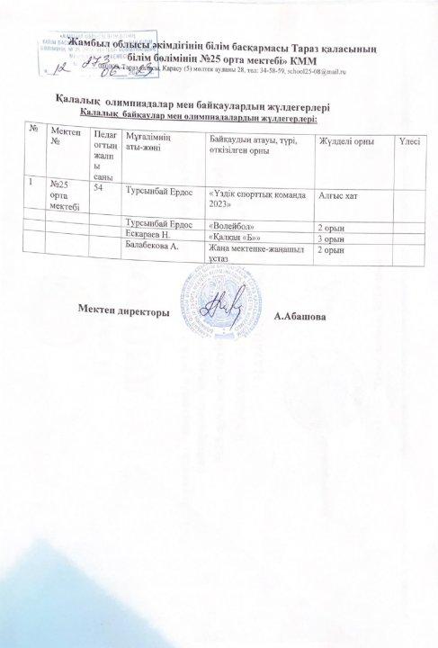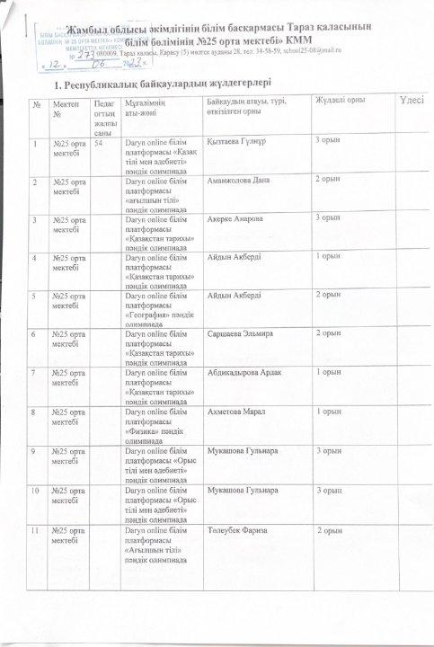 13 июнь 2023 0 1 2 3 4 5 2022-2023 оқу жылының Тараз қаласы № 25 орта мектебінің мұғалімдері мен оқушылардың жетістіктері