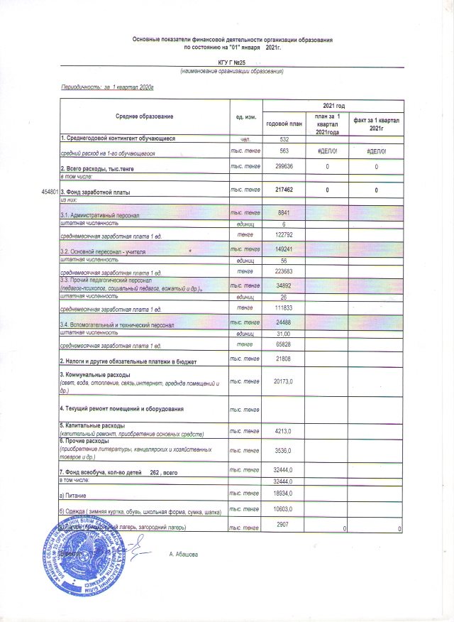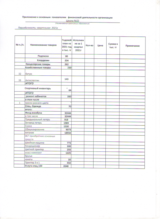 Приложение к основным показателям финансовой деятельности организации » СШ №25