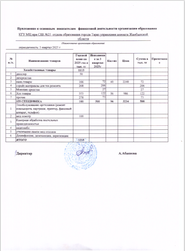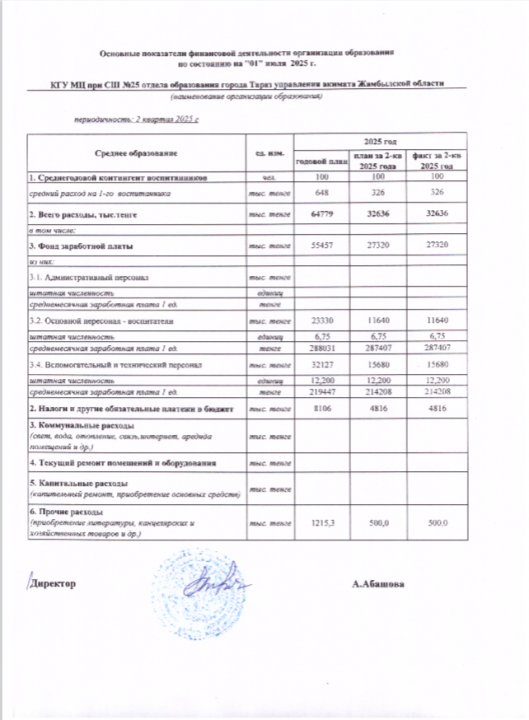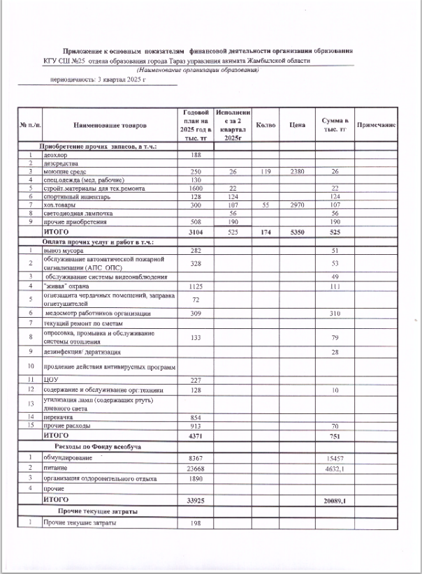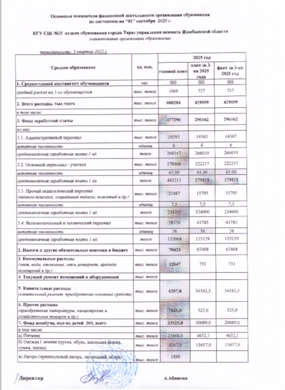 Білім беру ұйымының қаржылық қызметінің негізгі көрсеткіштері » СШ №25