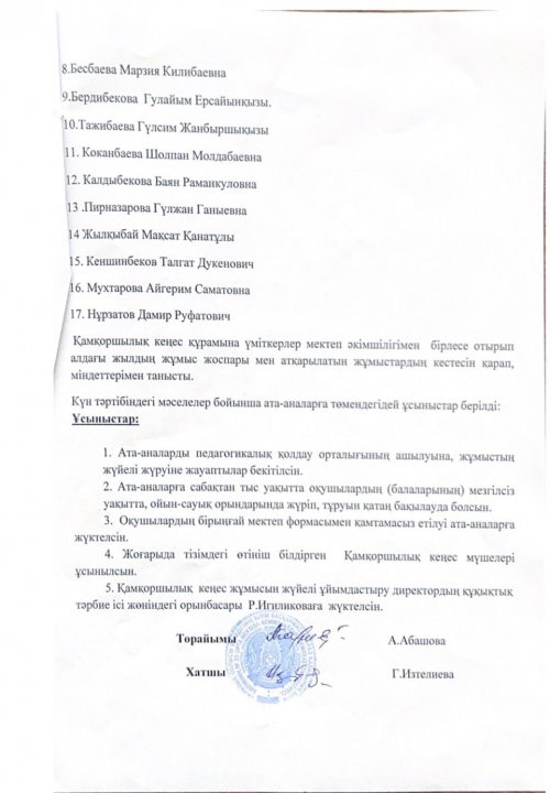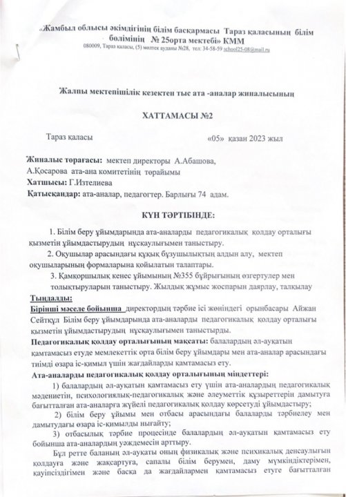 Жалпы мектепішілік кезектен тыс ата-аналар жиналысының ХАТТАМАСЫ » СШ №25