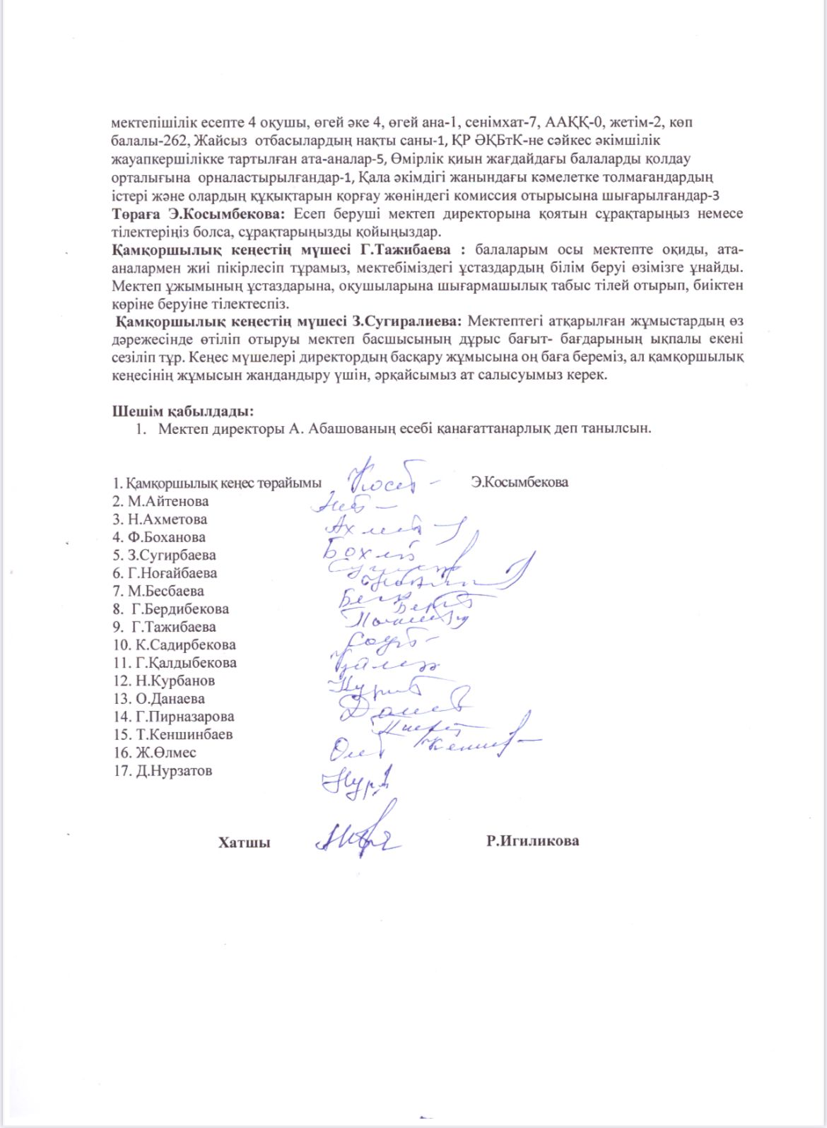 » » » Мектеп директорының қамқоршылық кеңес мүшелері алдындағы есебі