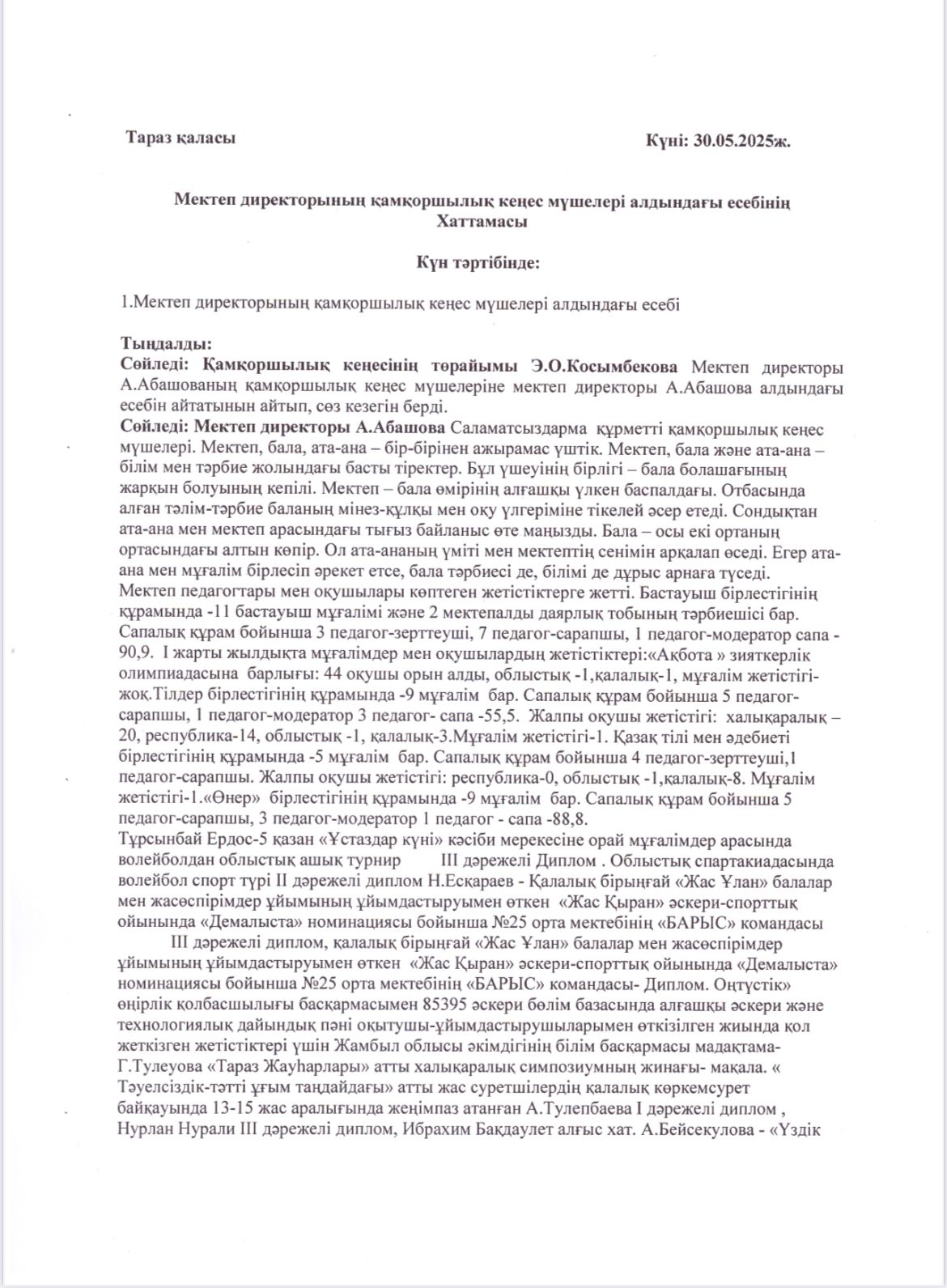 Мектеп директорының қамқоршылық кеңес мүшелері алдындағы есебі » СШ №25