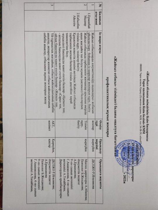 16 сентябрь 2022 0 1 2 3 4 5 "Жайсыз отбасы" тізіміндегі баланы оңалтуға бағытталған профилактикалық жұмыс жоспары