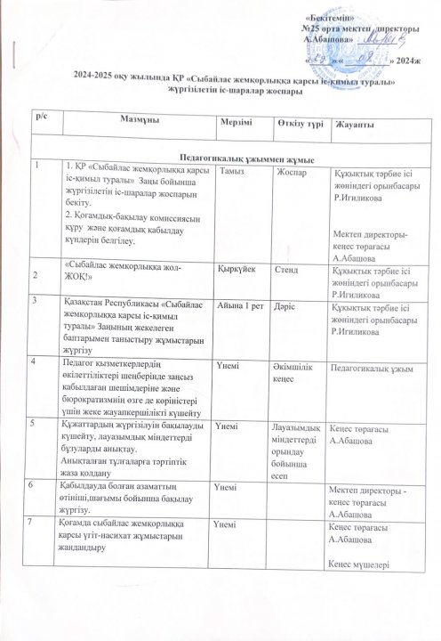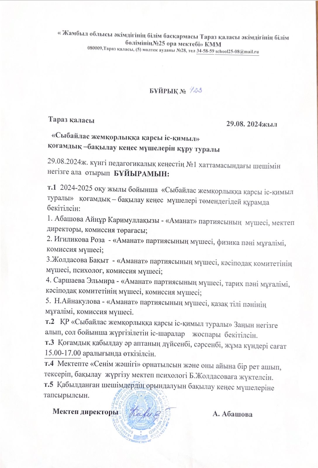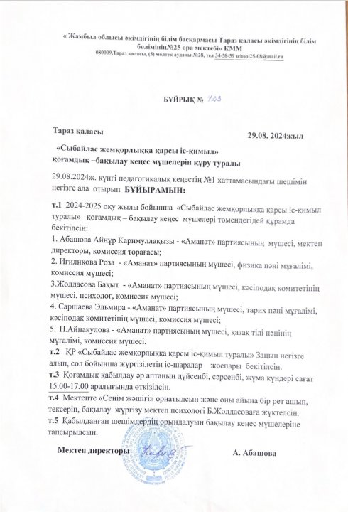 29 август 2024 0 1 2 3 4 5 "Сыбайлас жемқорлыққа қарсы іс-қимыл"қоғамдық-бақылау кеңес мүшелері мен жоспары