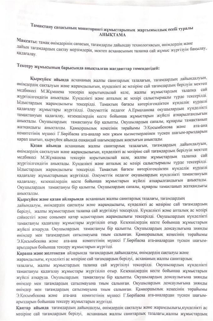 17 январь 2022 0 1 2 3 4 5 Тамақтану сапасының мониторингі жұмыстарының жартыжылдық есебі туралы АНЫҚТАМА