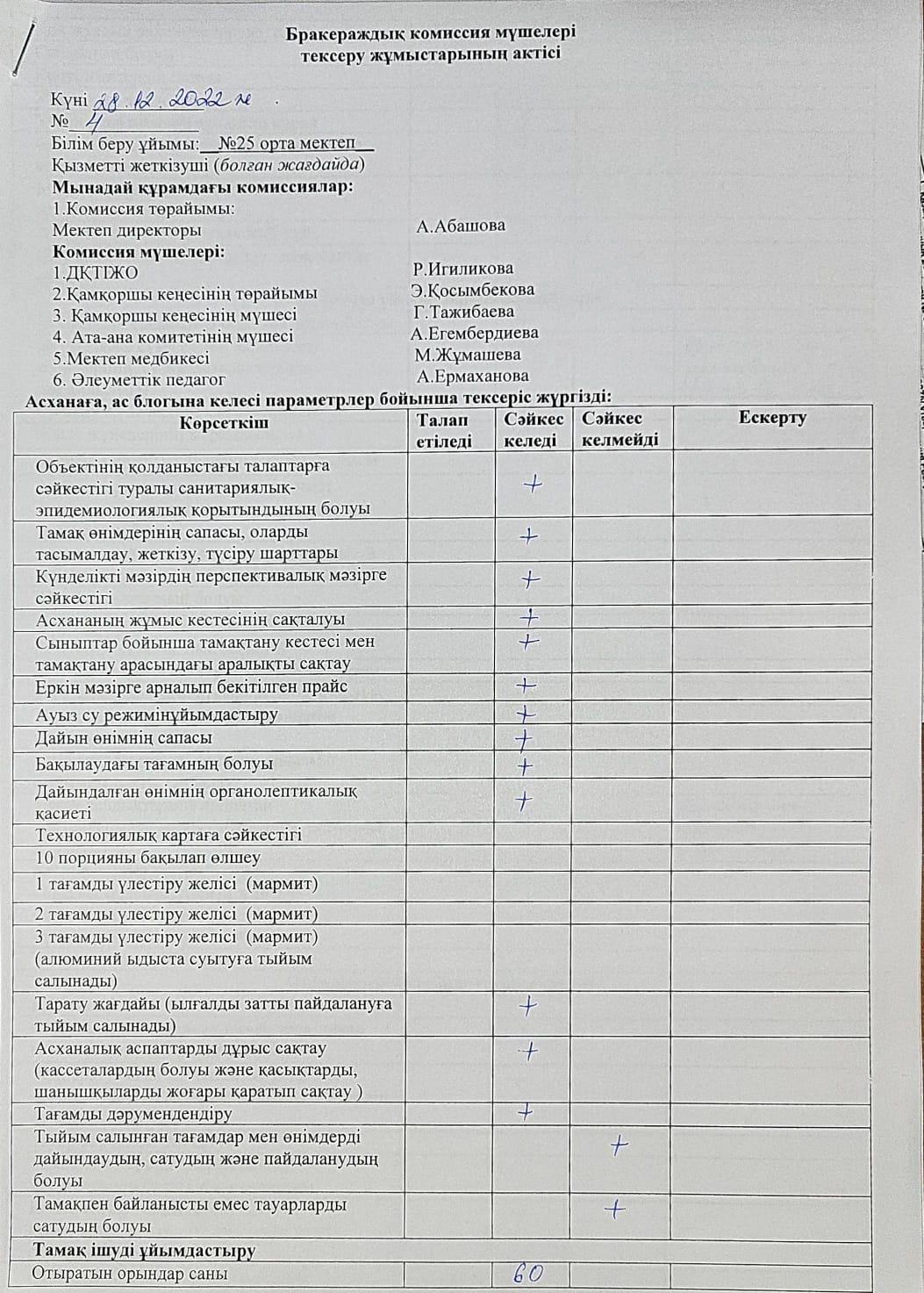 Тамақтану сапасына мониторинг жүргізу актісі » СШ №25