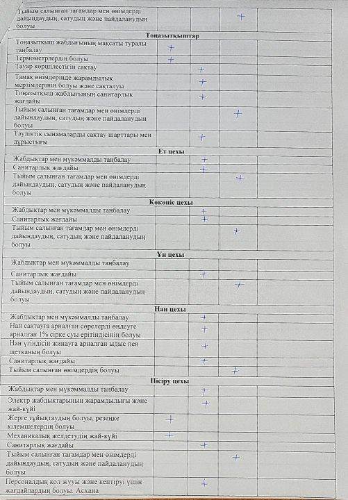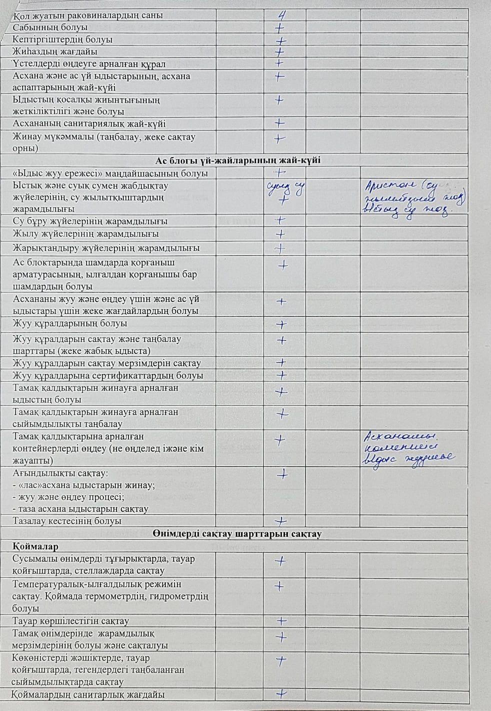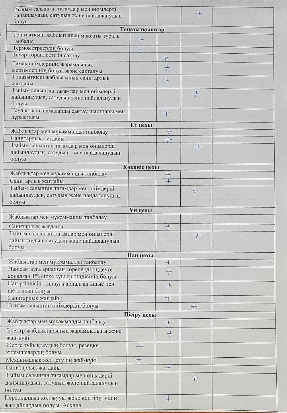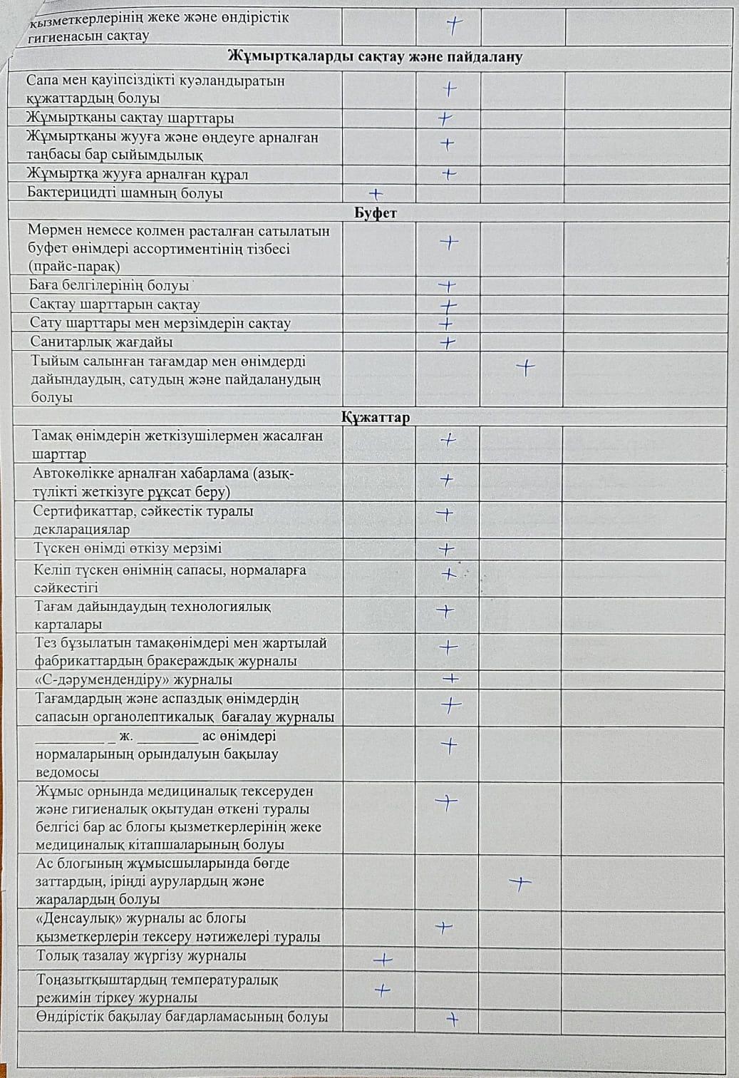 » » Тамақтану сапасына мониторинг жүргізу актісі
