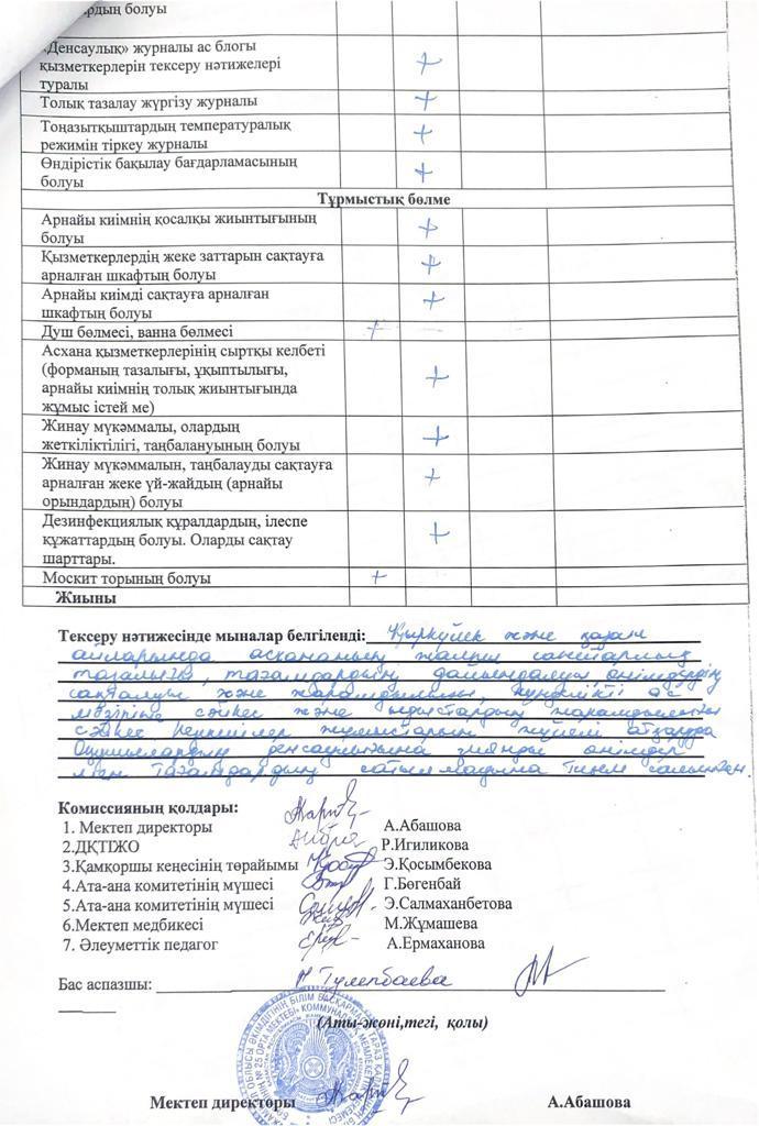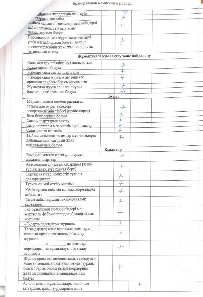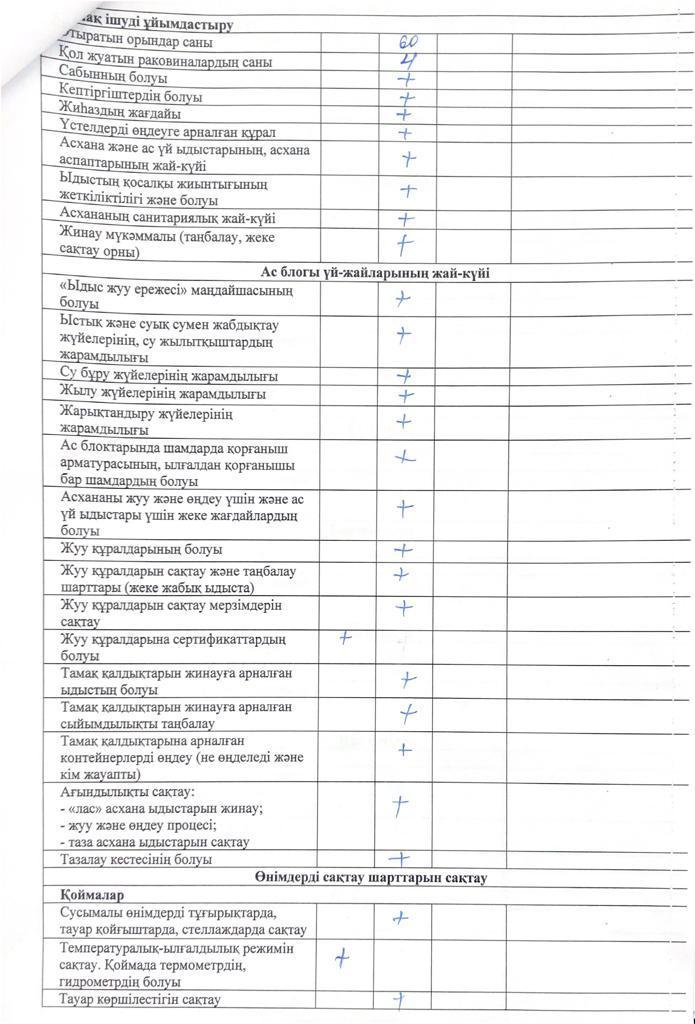 » » Тамақтану сапасына мониторинг жүргізу актісі