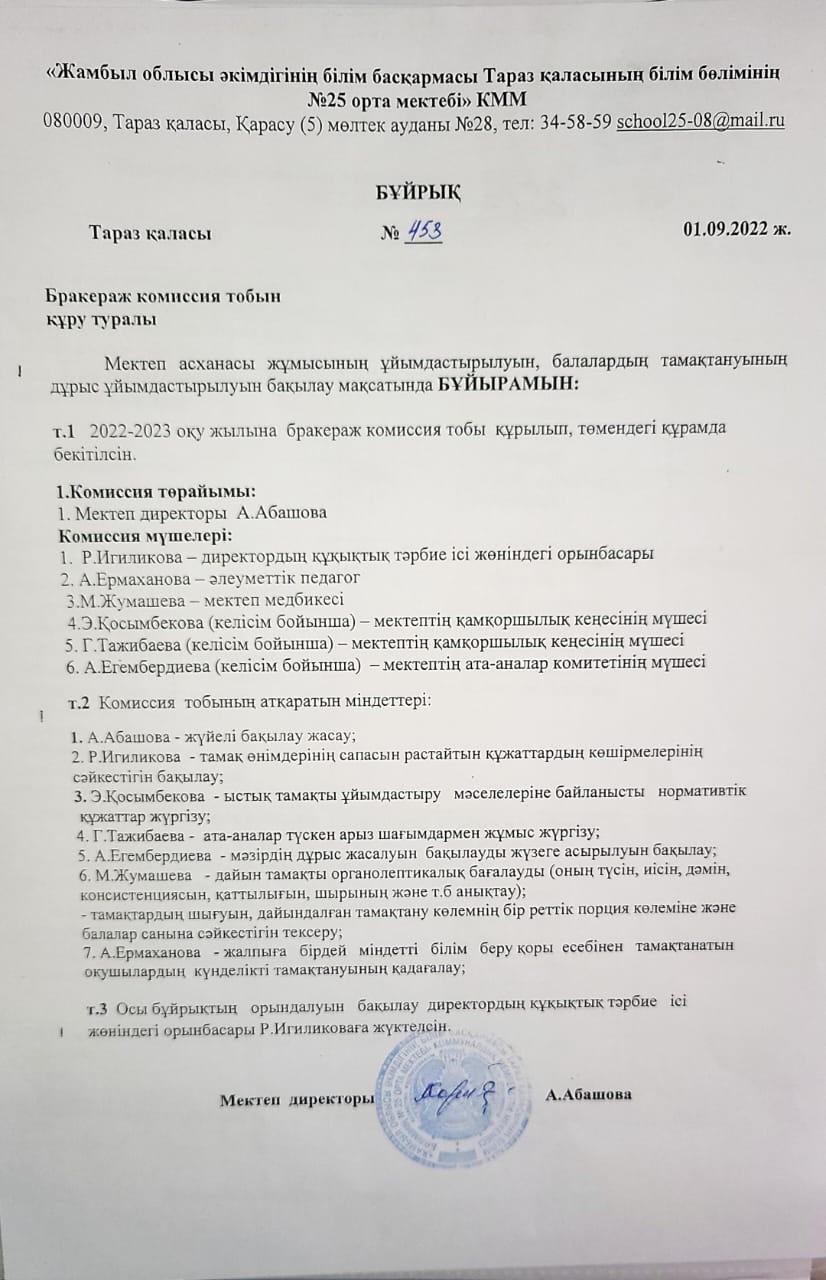 Бракераж комиссия мүшелерінің құру » СШ №25