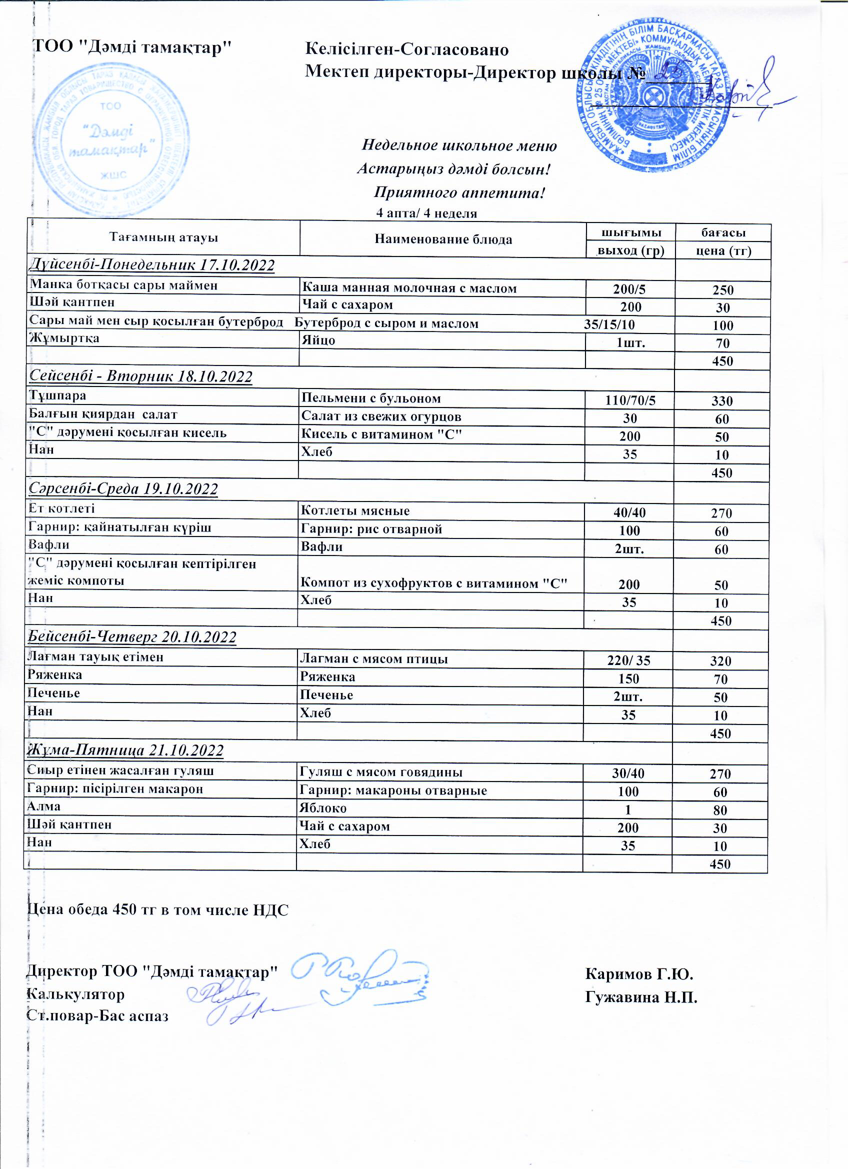 17 октябрь 2022 0 1 2 3 4 5 Апталық ас мәзірі. 17.11. - 21.11.2022 аралығындағы мектептің апталық ас мәзірі