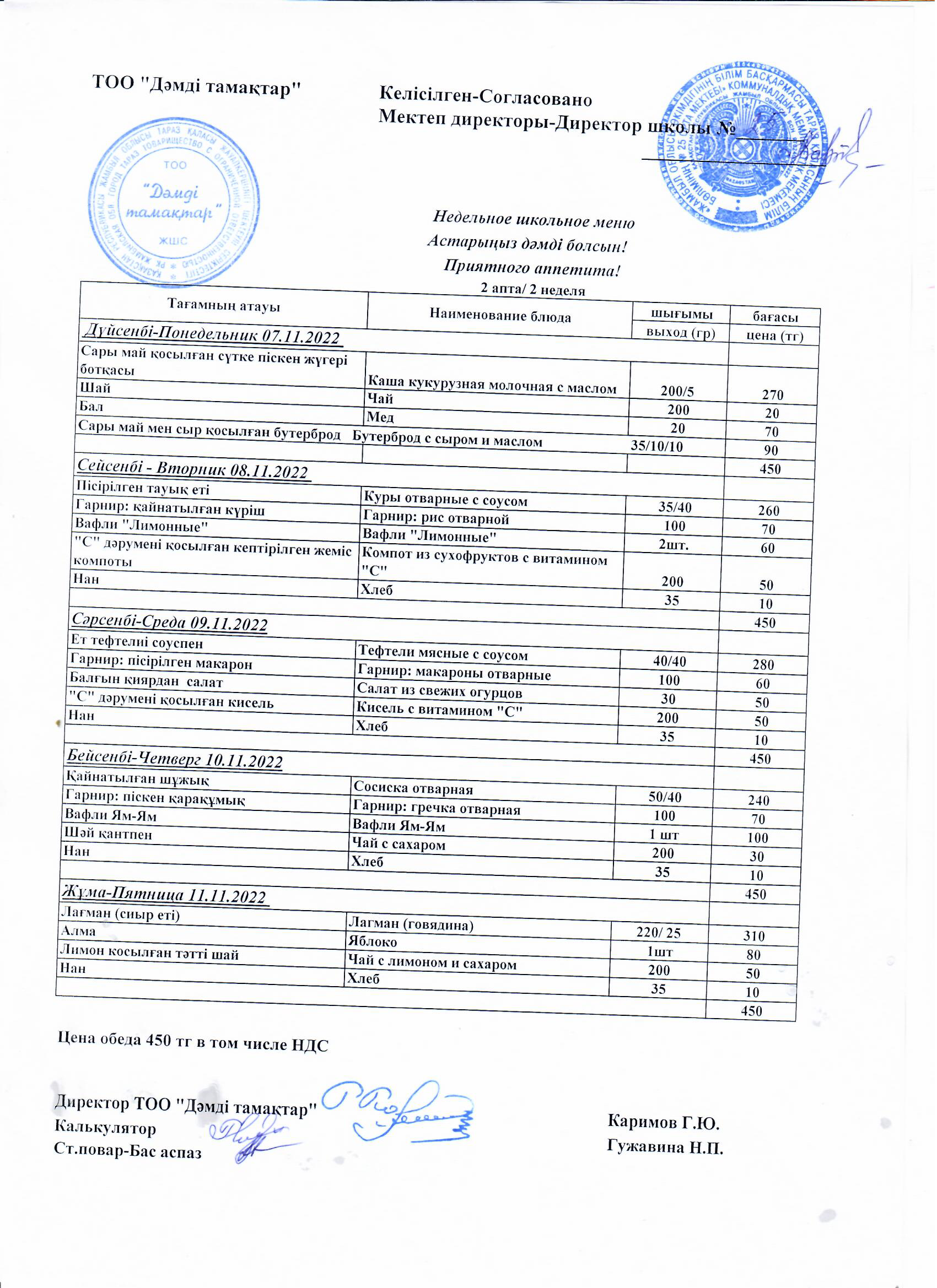 07 ноябрь 2022 0 1 2 3 4 5 Апталық ас мәзірі. Мектептің 07.11.2022 - 11.11.2022 ж. аралығындағы апталық ас мәзірі