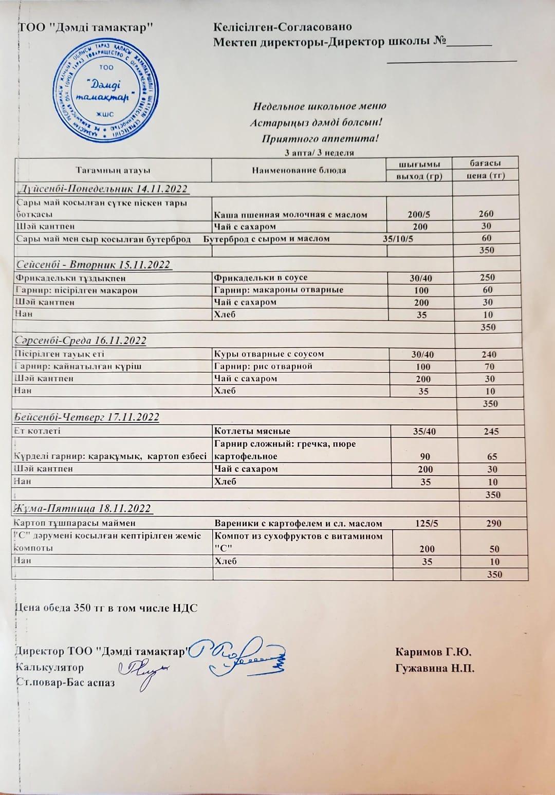 14 ноябрь 2022 0 1 2 3 4 5 Апталық ас мәзірі. 14.11. - 18.11.2022 аралығындағы мектептің апталық ас мәзірі