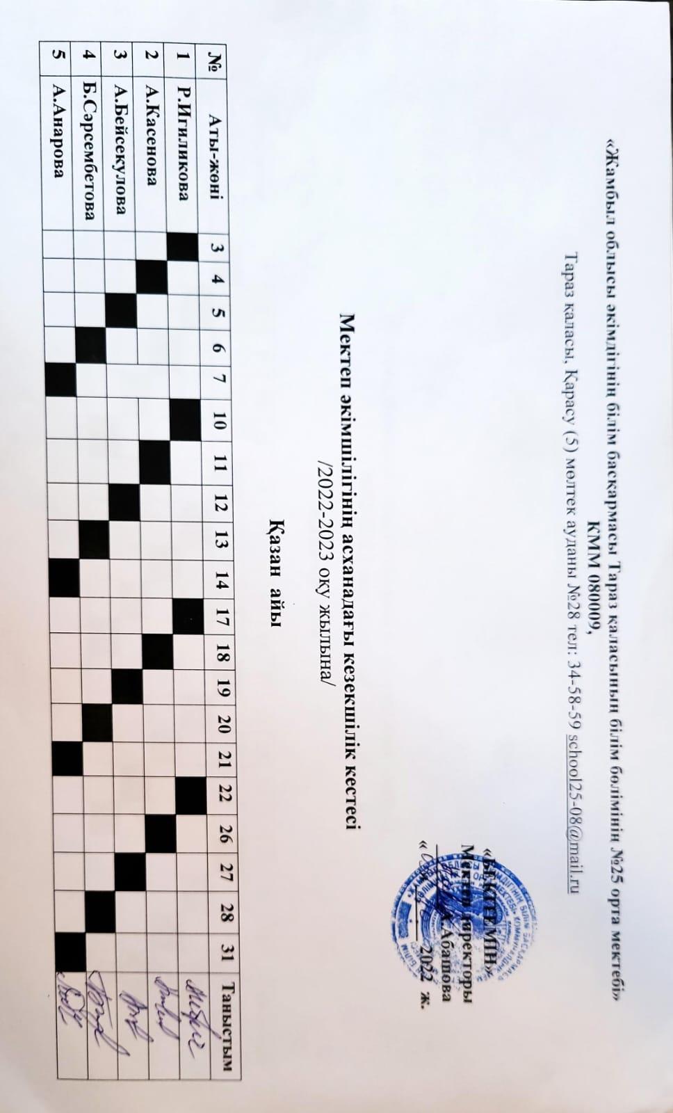 Мектеп әкімшілігінің асханадағы кезекшілік кестесі » СШ №25