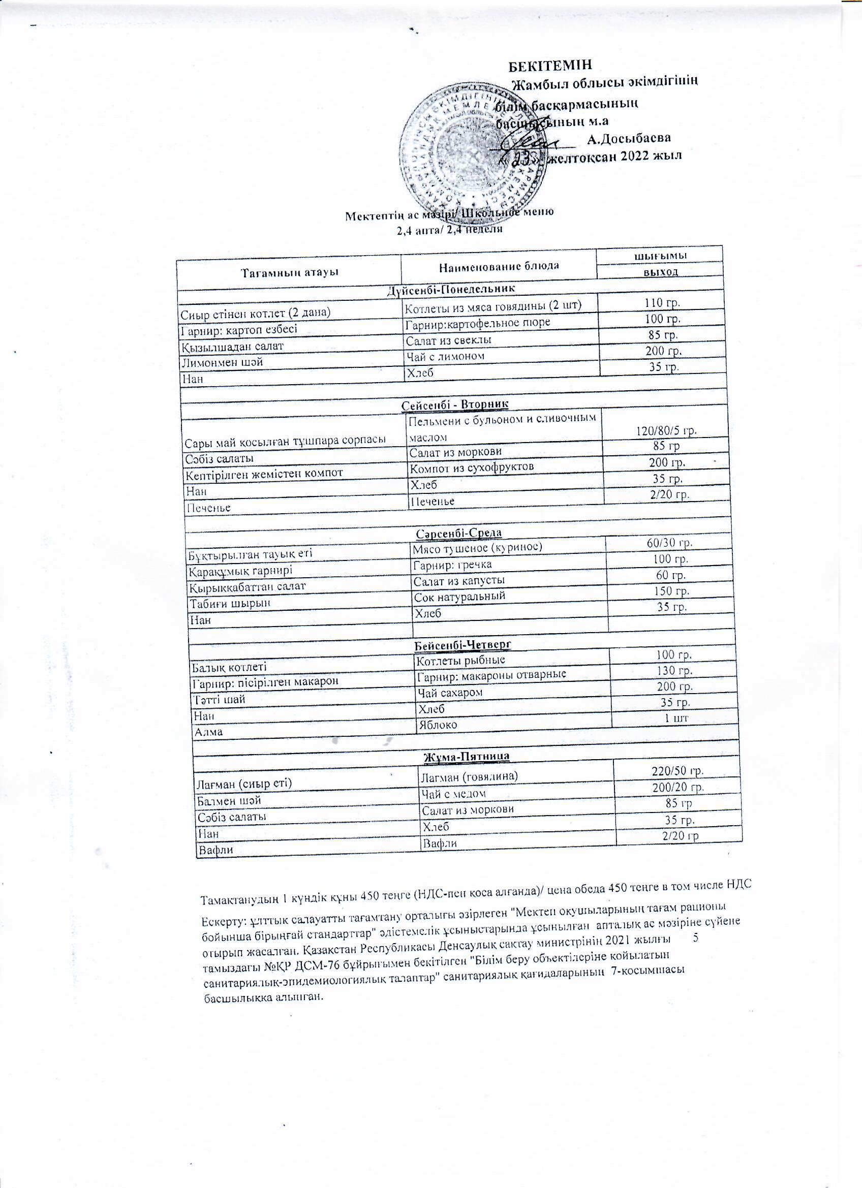 » » Апталық ас мәзірі. 09.01. - 13.01.2023 аралығындағы ас мәзірі