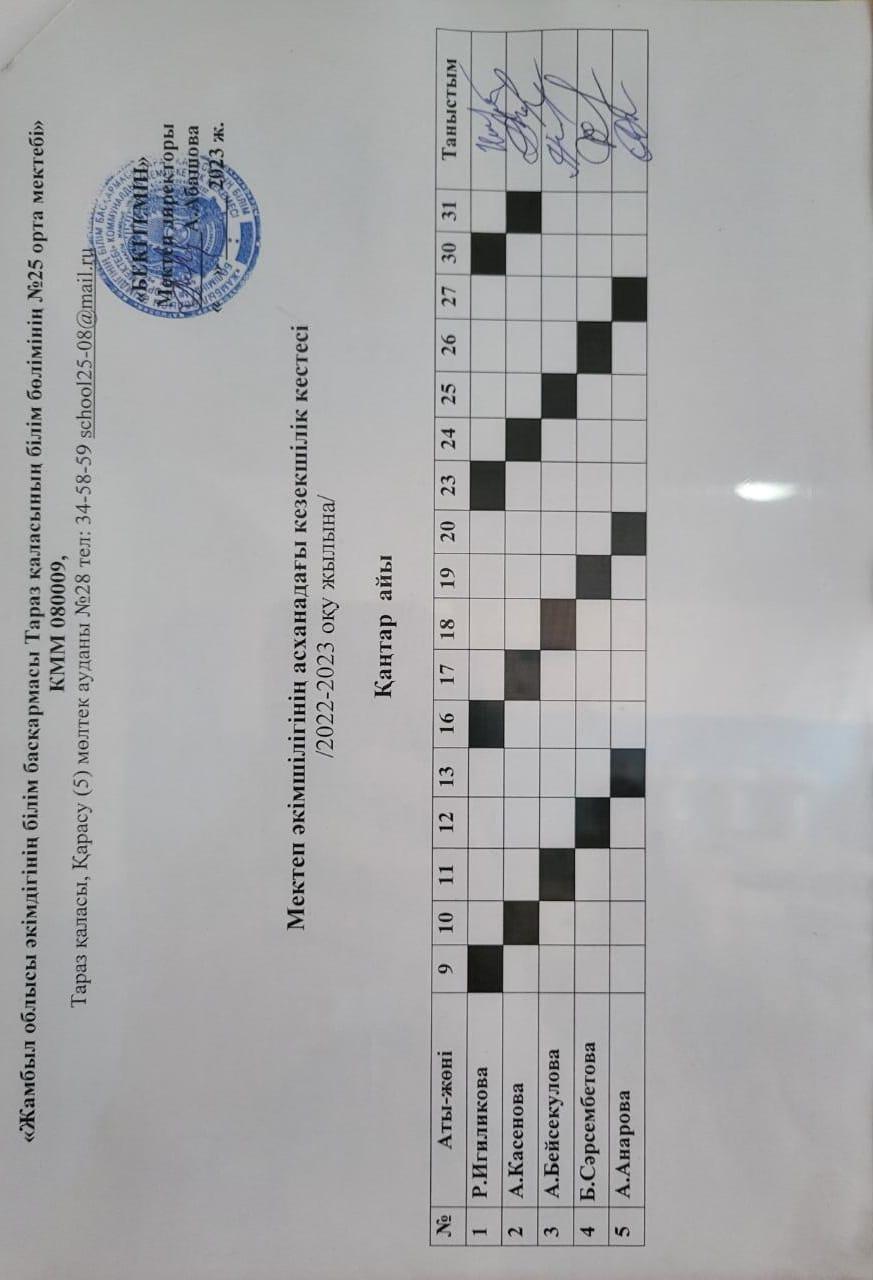 Мектеп асханасындағы әкімшілік кезекшілік кестесі » СШ №25