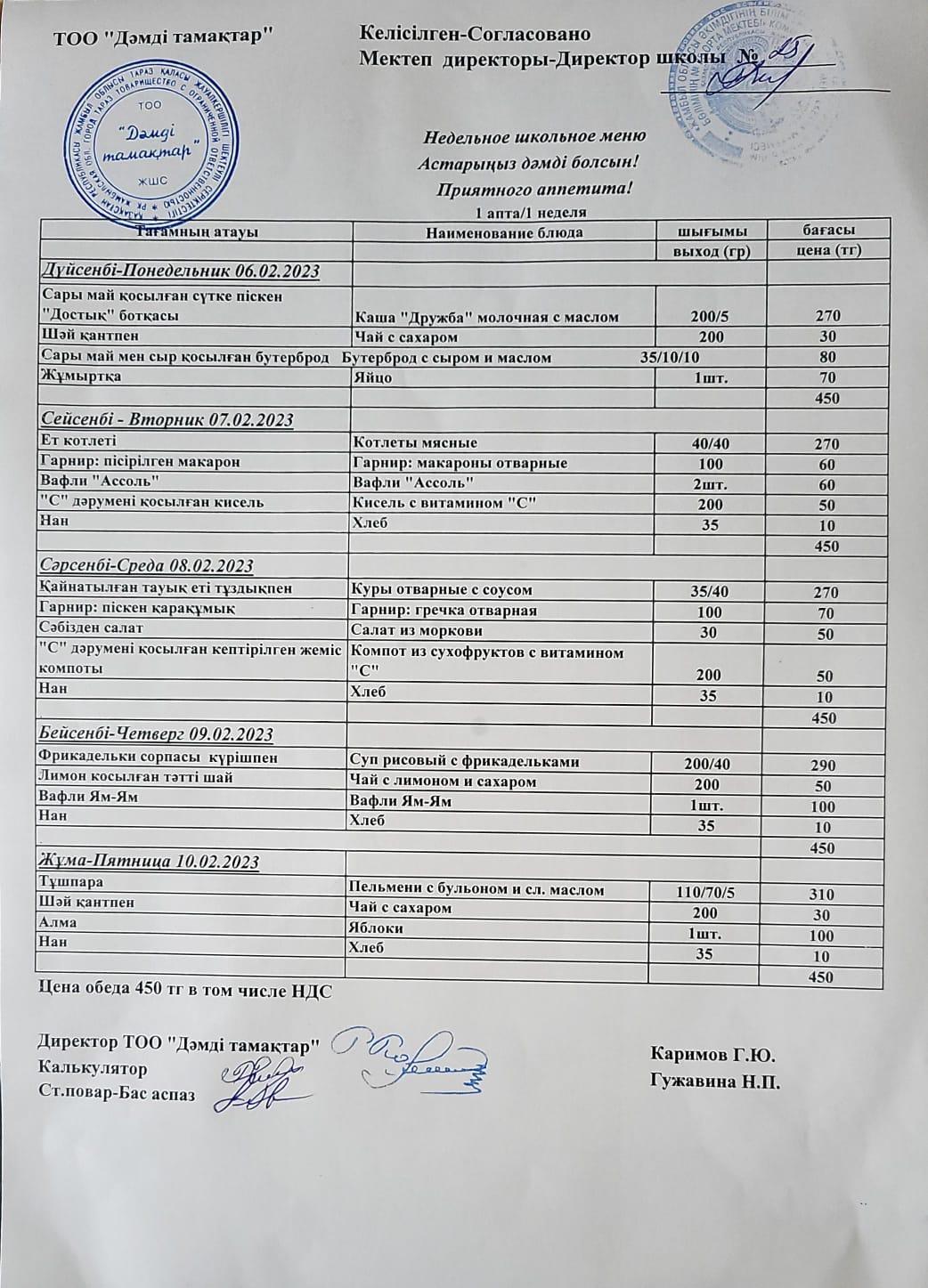 » » Ас мәзірі. 06.02. - 10.02.2023 ж. апталық ас мәзірі.
