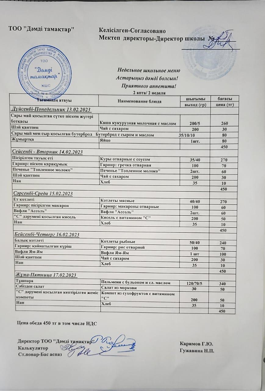 13 февраль 2023 0 1 2 3 4 5 Апталық ас мәзірі. 13.02. - 17.02.2023 аралығындағы мектептің апталық ас мәзірі