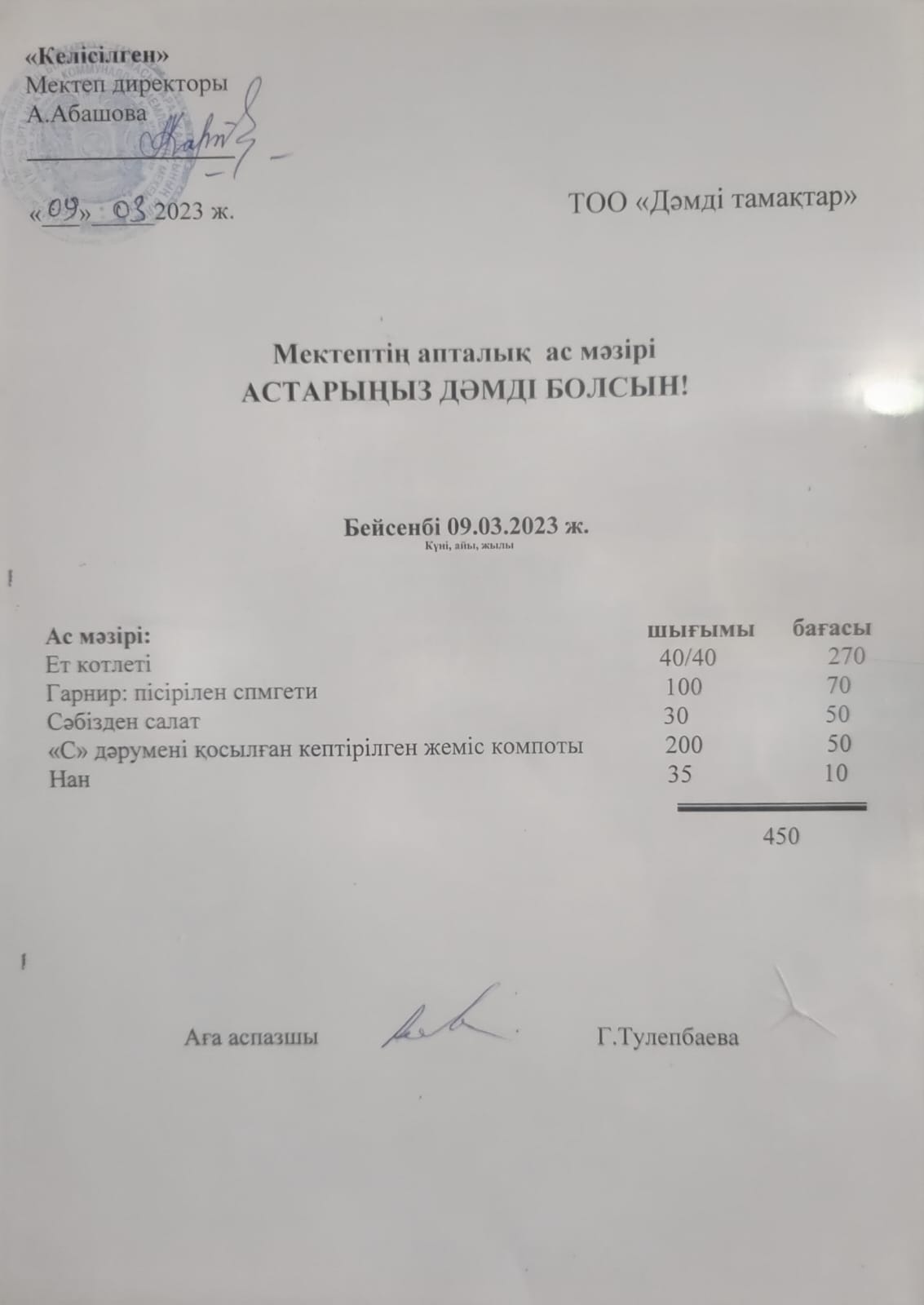» » Ас мәзірі