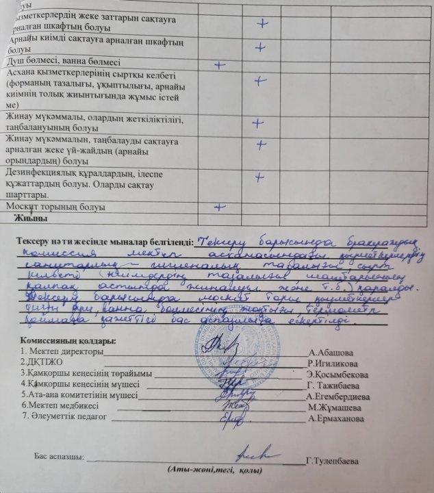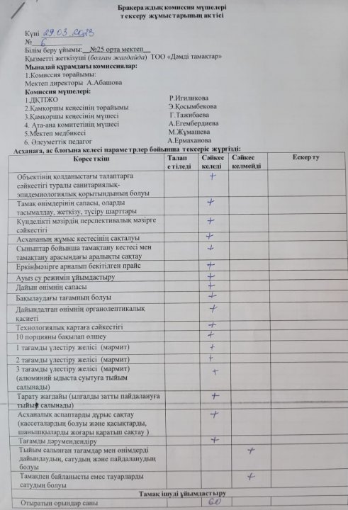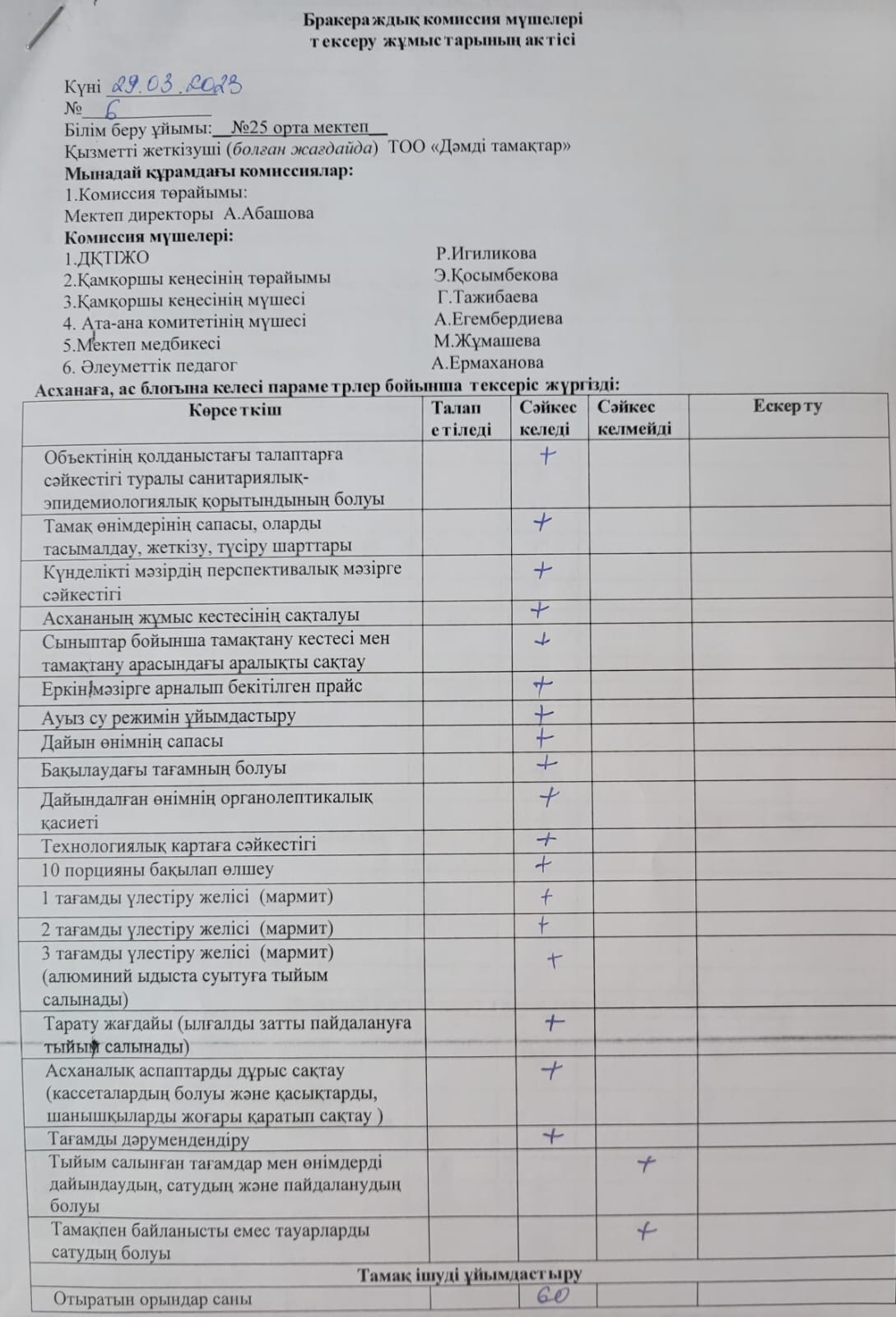Бракераж комиссия мүшелерінің тексерісу актісі » СШ №25
