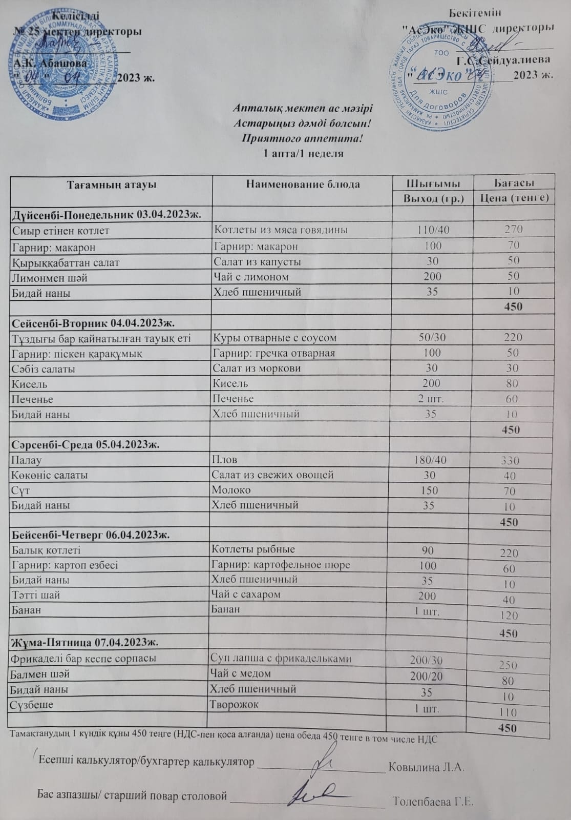 Ас мәзірі » СШ №25