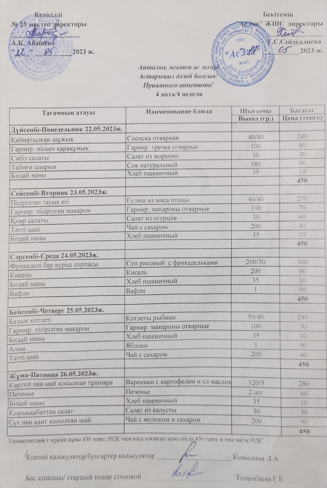 Апталық ас мәзірі » СШ №25