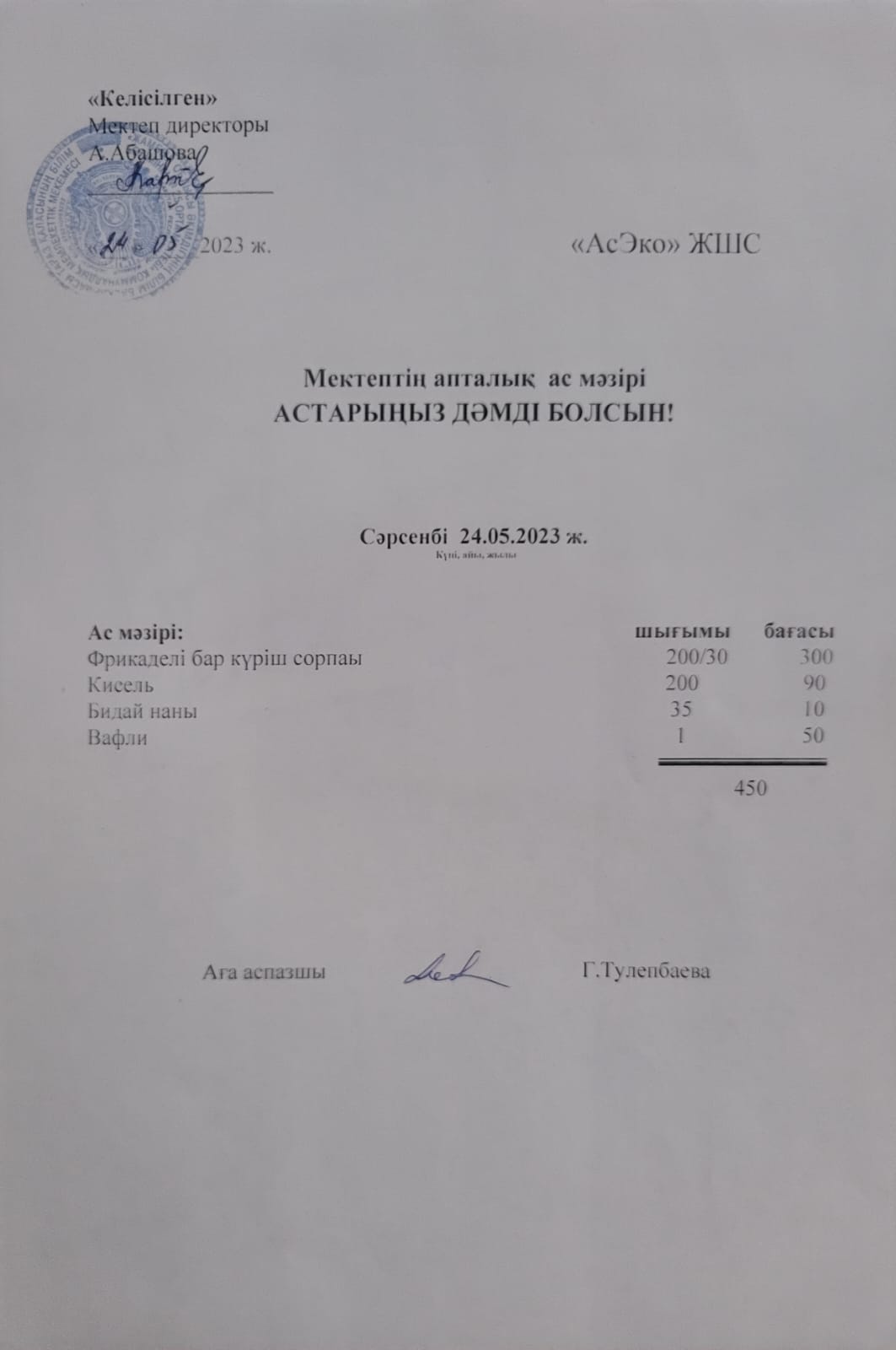 » » Ас мәзірі