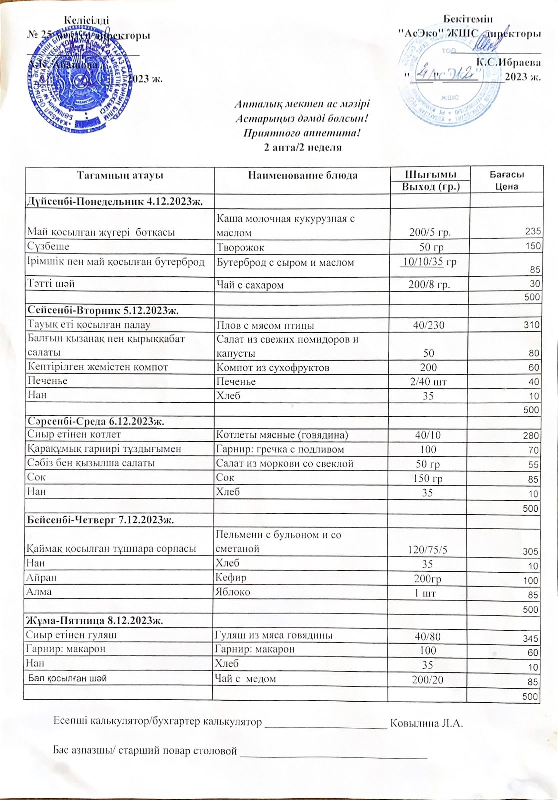 » » 04.12.2023-08.12.2023ж күндері аралығында ас мәзірі