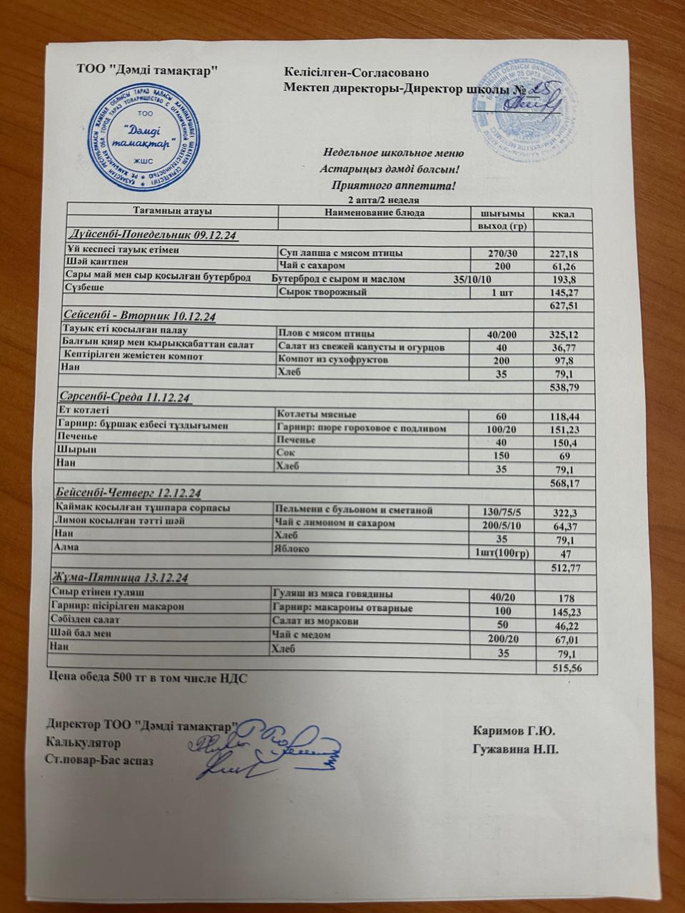 09.12.2024-13.12.2024 аралығындағы ас мәзірі » СШ №25