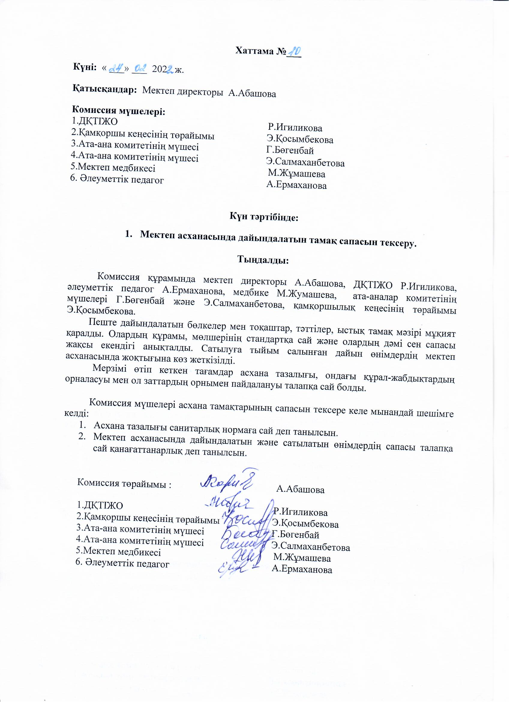 Брокераж комиссия отырысының хаттамасы » СШ №25