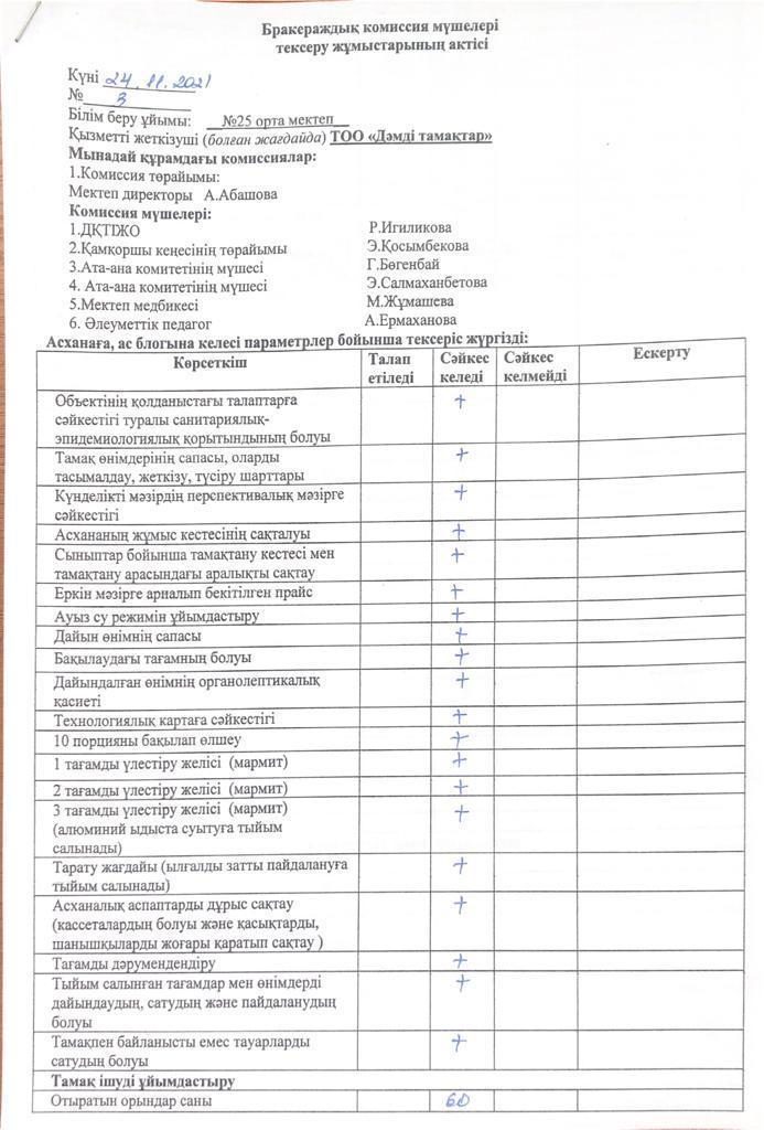 Брокераждық комиссия мүшелері тексеру жұмыстарының актісі » СШ №25