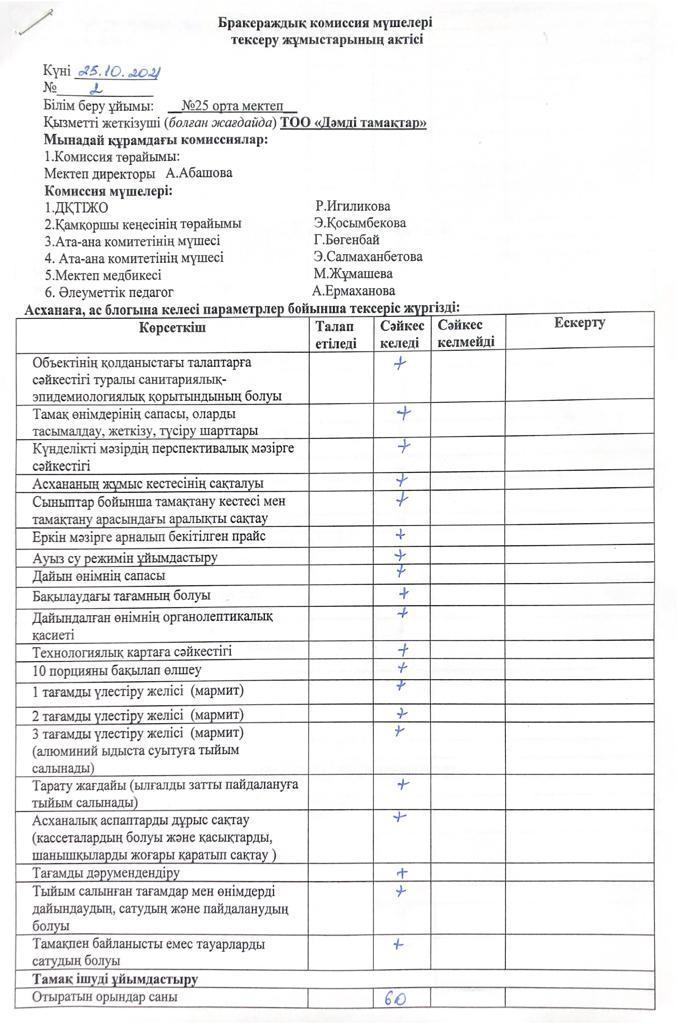 Брокераждық комиссия мүшелері тексеру жұмыстарының актісі » СШ №25