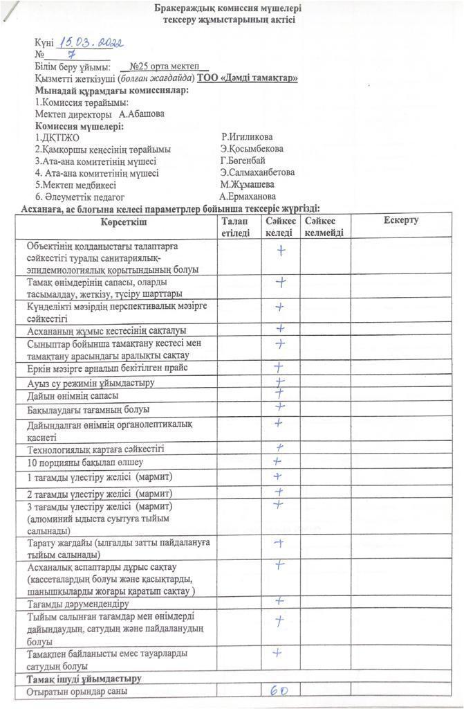Брокераждық комиссия мүшелері тексеру жұмыстарының актісі » СШ №25