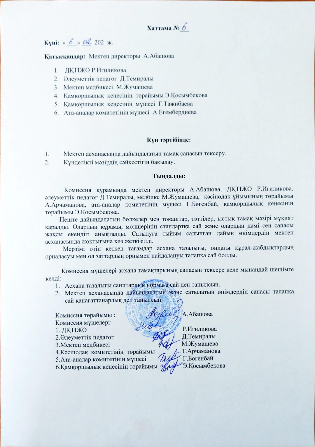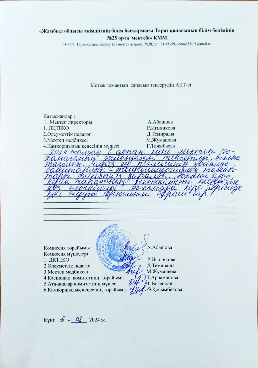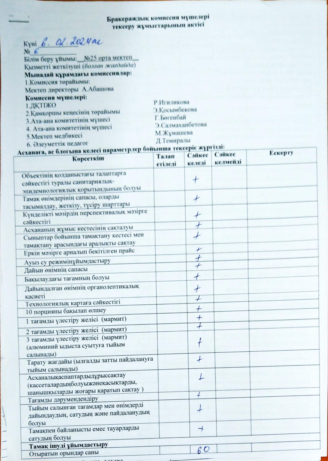 Бракераж мүшелерінің тексеру жұмыстары, хаттамалары, АКТ-сі. » СШ №25