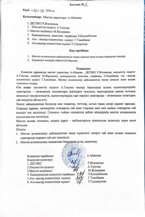 Брокераж комиссия отырысының хаттамасы » СШ №25