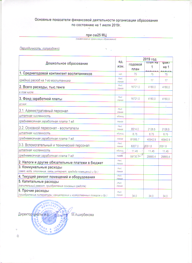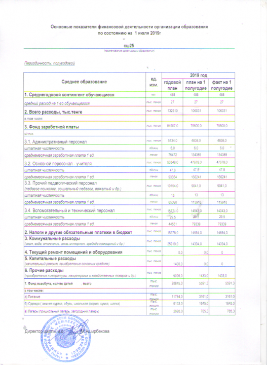 ҚАРЖЫЛЫҚ ҚЫЗМЕТТІҢ НЕГІЗГІ КӨРСЕТКІШТЕРІ » СШ №25