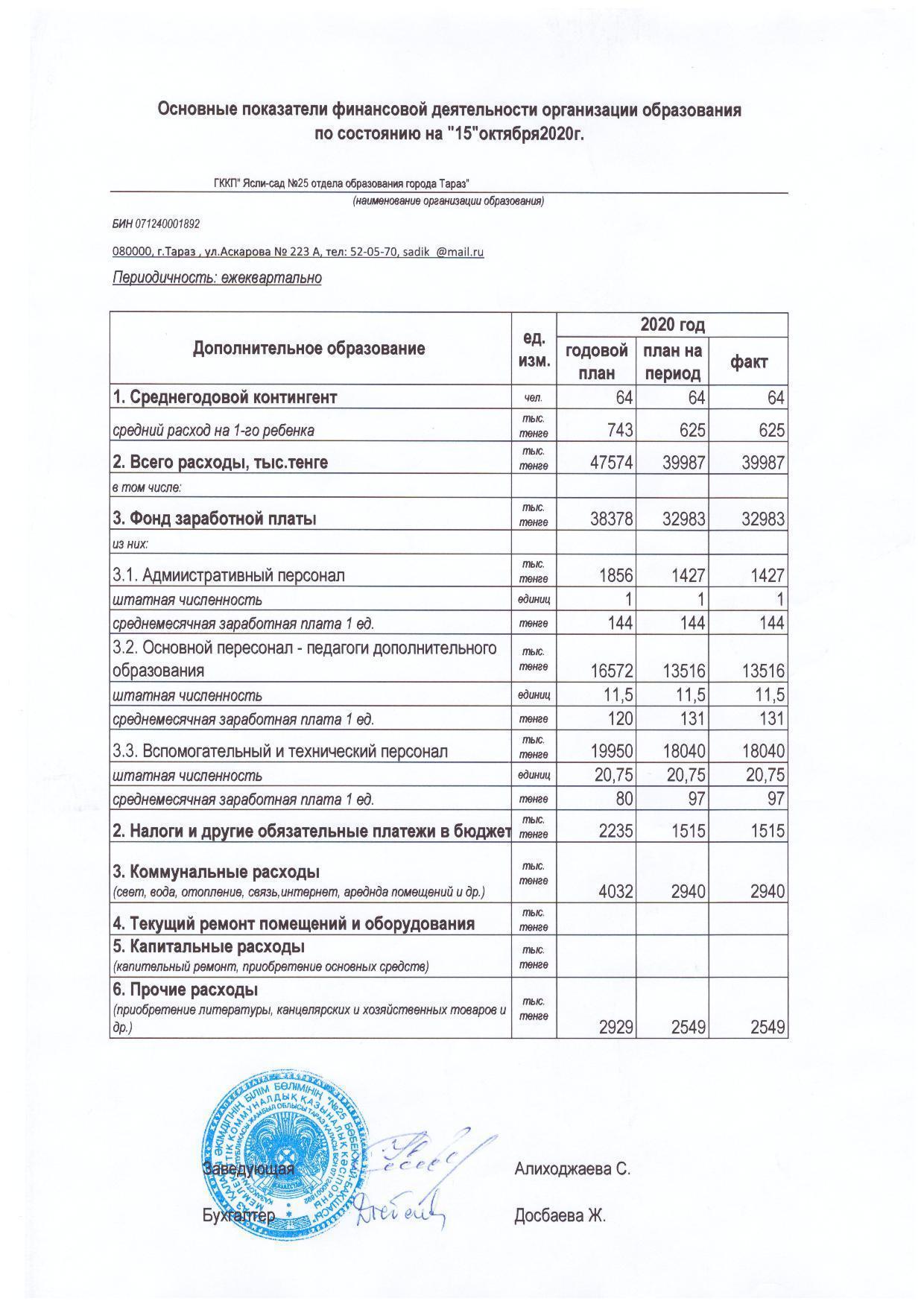 Қаржылық қызметтің негізгі көрсеткіштері 15.10.2020 » СШ №25