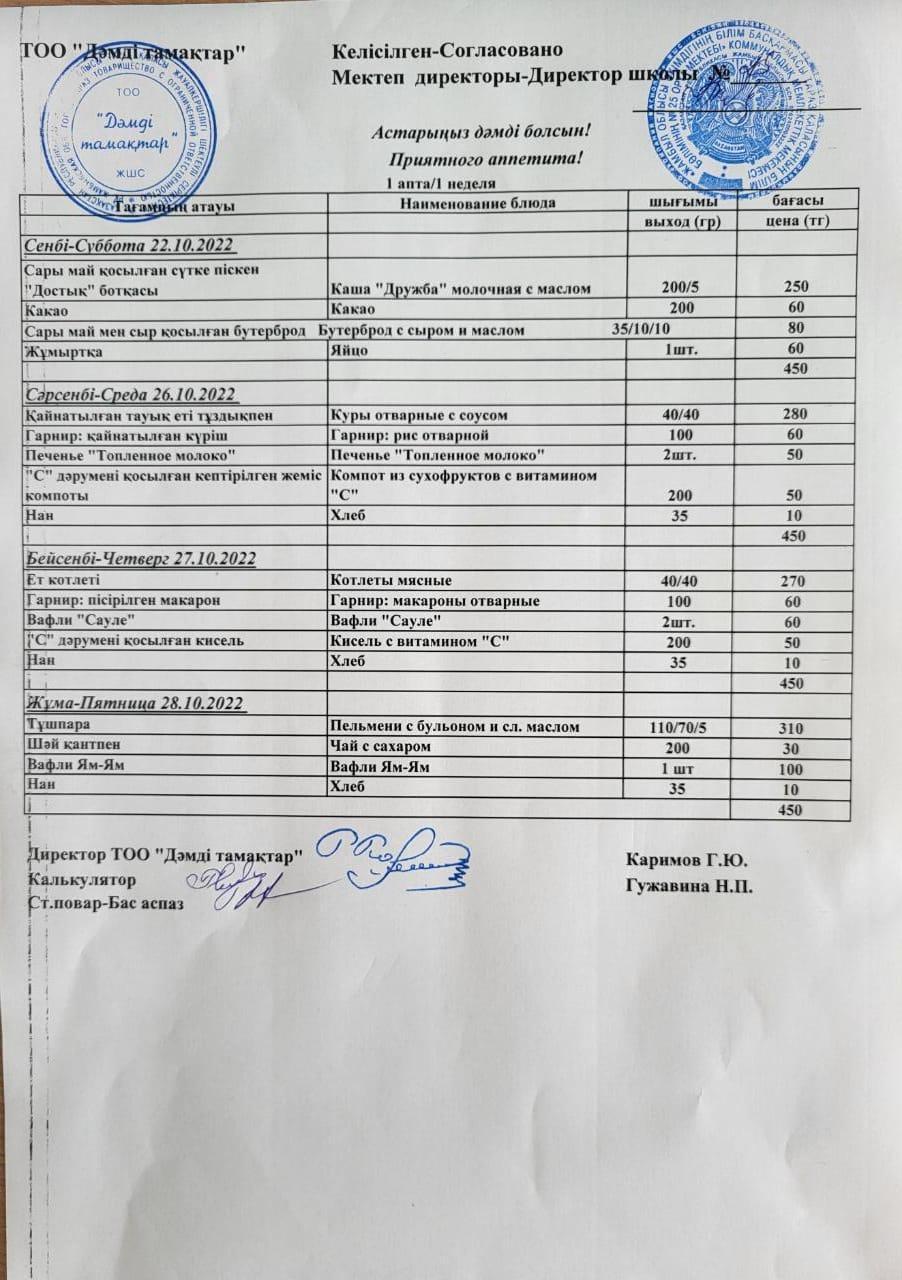 22 октябрь 2022 0 1 2 3 4 5 Апталық ас мәзірі. 22.10. - 28.10.2022 аралығындағы мектептің апталық ас мәзірі
