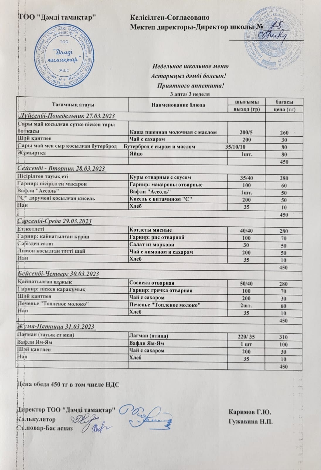 » » Апталық ас мәзірі