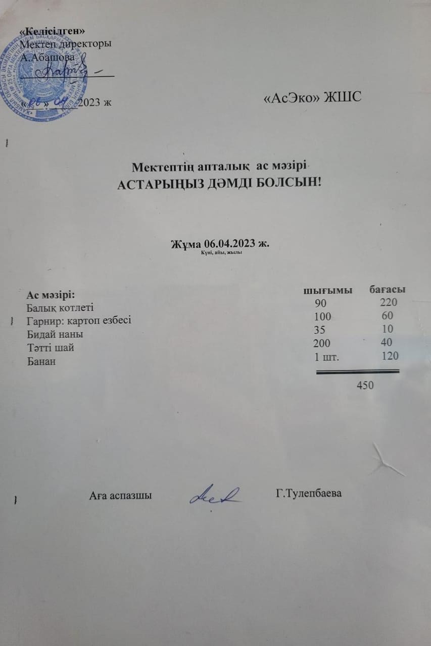 Ас мәзірі » СШ №25
