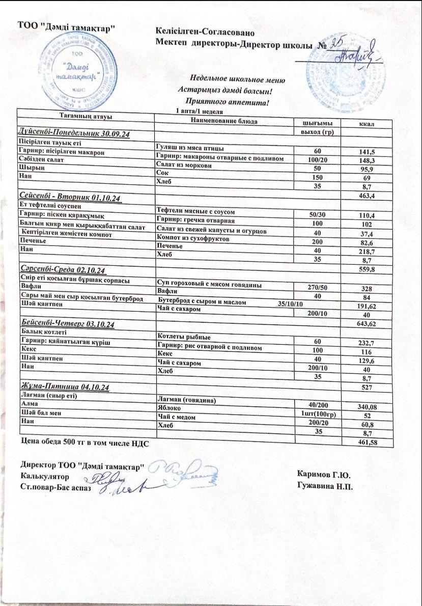 30.09.24 - 04.10.24 аралығындағы ас мәзірі » СШ №25