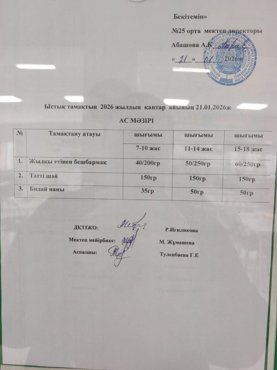 Ас мәзірі » СШ №25
