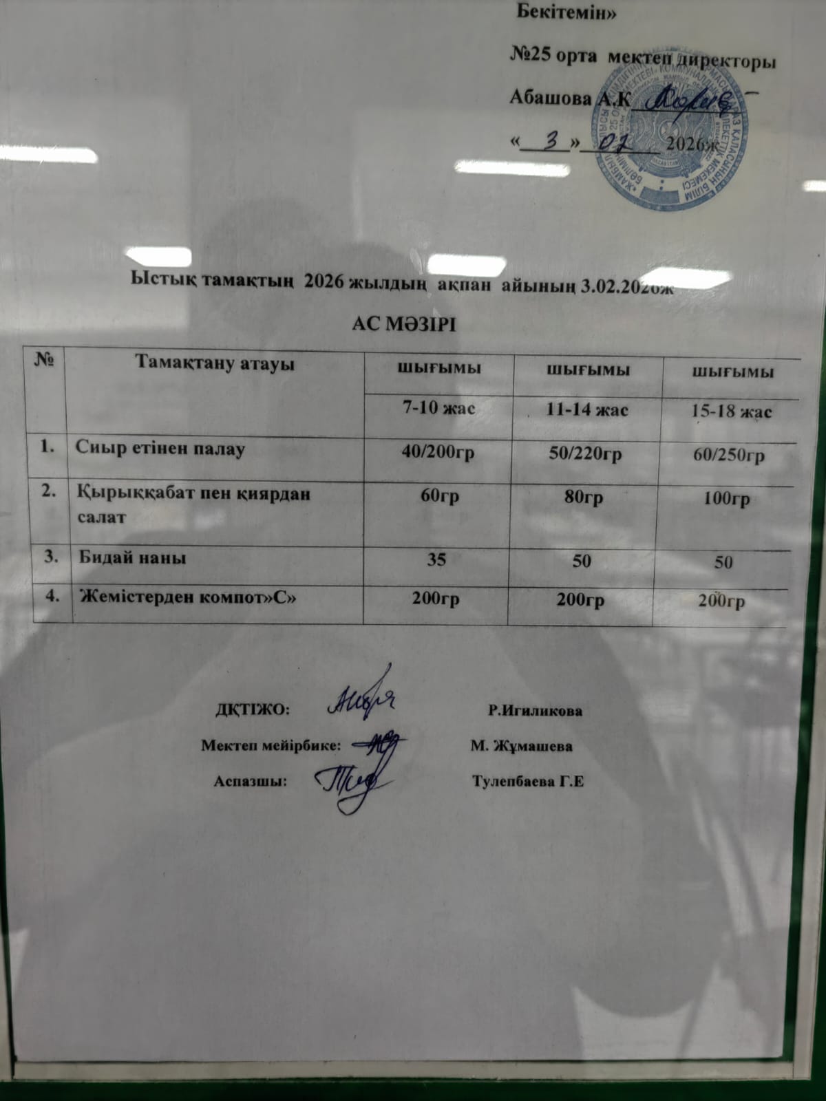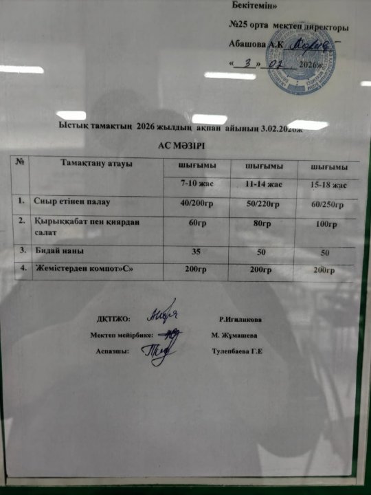 24 сентябрь 2025 Апталық ас мәзірі